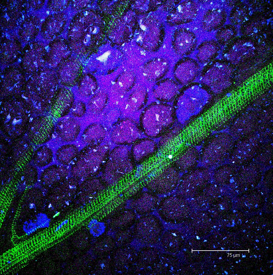 Overview Creator: Clauss, Jenny Subject: Description:Autofluorescent Carnation Petal (Dianthus caryophyllus); Transparent projection of a series scan with total depth of section of 43.15 µm; Phloem is shown in green, blue and red autofluorescence are unknown Date Original:2013, April 2 Language:eng Rights Rights Management:Original materials may be protected by the Copyright Law of the United States (more information). Technical Digitization Specifications:Saved as JPEG (level 12) in Photoshop CS6 Date Digital:Mon, 02/02/2015 - 20:00 Format:image/jpeg Type:Image