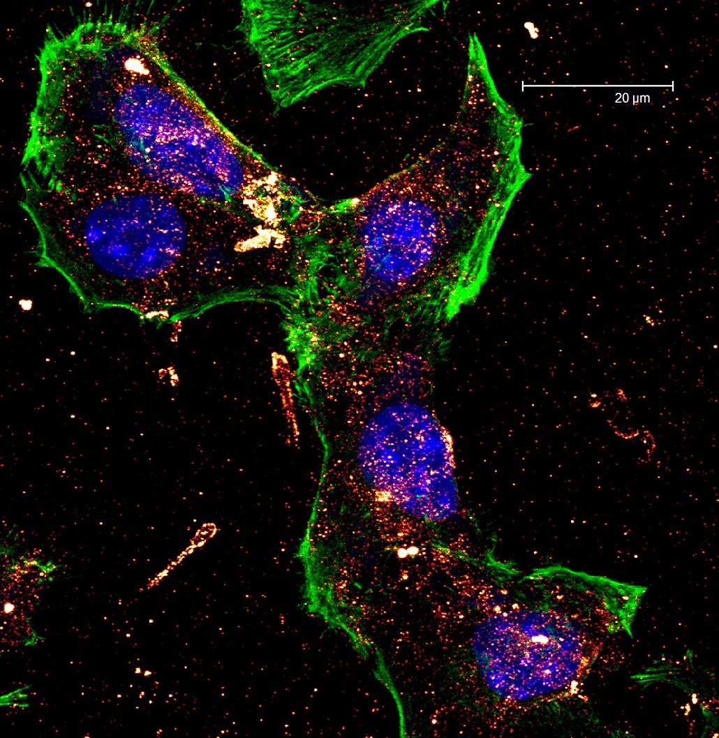 Overview Creator: Wilkes, Meredith Subject: Description:Maximum projection. Depth of section: 4.23 µm. Zoom of 2.50. Phalloidin is in green, MAPS is in glow, and nuclei are in blue. Date Original:2011, October 28 Language:eng Rights Rights Management:Original materials may be protected by the Copyright Law of the United States (more information). Technical Digitization Specifications:Saved as JPEG (level 12) in Photoshop CS5 with Unsharp Mask of 60:1. Date Digital:Thu, 02/02/2012 - 20:00 Format:image/jpeg Type:Image