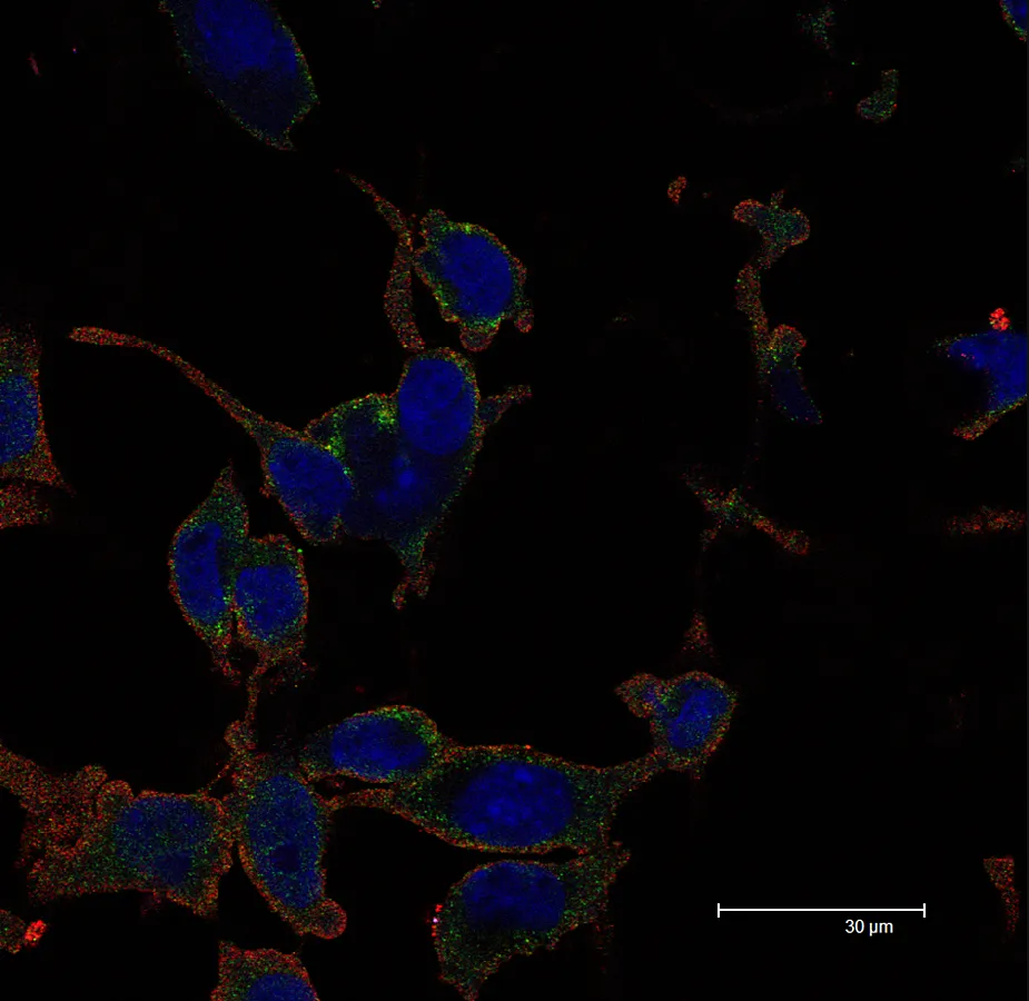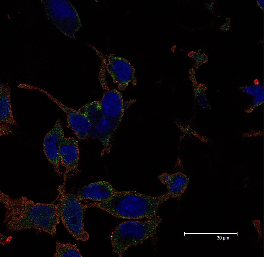 Overview Creator: Jones, Brenton Subject: Description:Single Scan of B16 Cells Green shows mitochondria associated proteins, blue shows nuclei, and red shows f-actin filaments. Date Original:2013, April 29 Language:eng Rights Rights Management:Original materials may be protected by the Copyright Law of the United States (more information). Technical Digitization Specifications:Saved as JPEG (level 12) in Photoshop CS6 Date Digital:Tue, 02/03/2015 - 20:00 Format:image/jpeg Type:Image