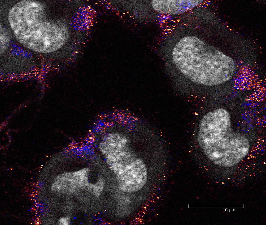 Overview Creator: Rescott, Marissa Subject: Description:Single scan image of B16 melanoma cells with dye finder processing (weak tracing method). Nuclei shown in grey, intermediate filaments in blue, microtubules in glow. 2x Zoom Date Original:2013, April 12 Language:eng Rights Rights Management:Original materials may be protected by the Copyright Law of the United States (more information). Technical Digitization Specifications:Saved as JPEG (level 12) in Photoshop CS6 Date Digital:Thu, 02/05/2015 - 20:00 Format:image/jpeg Type:Image