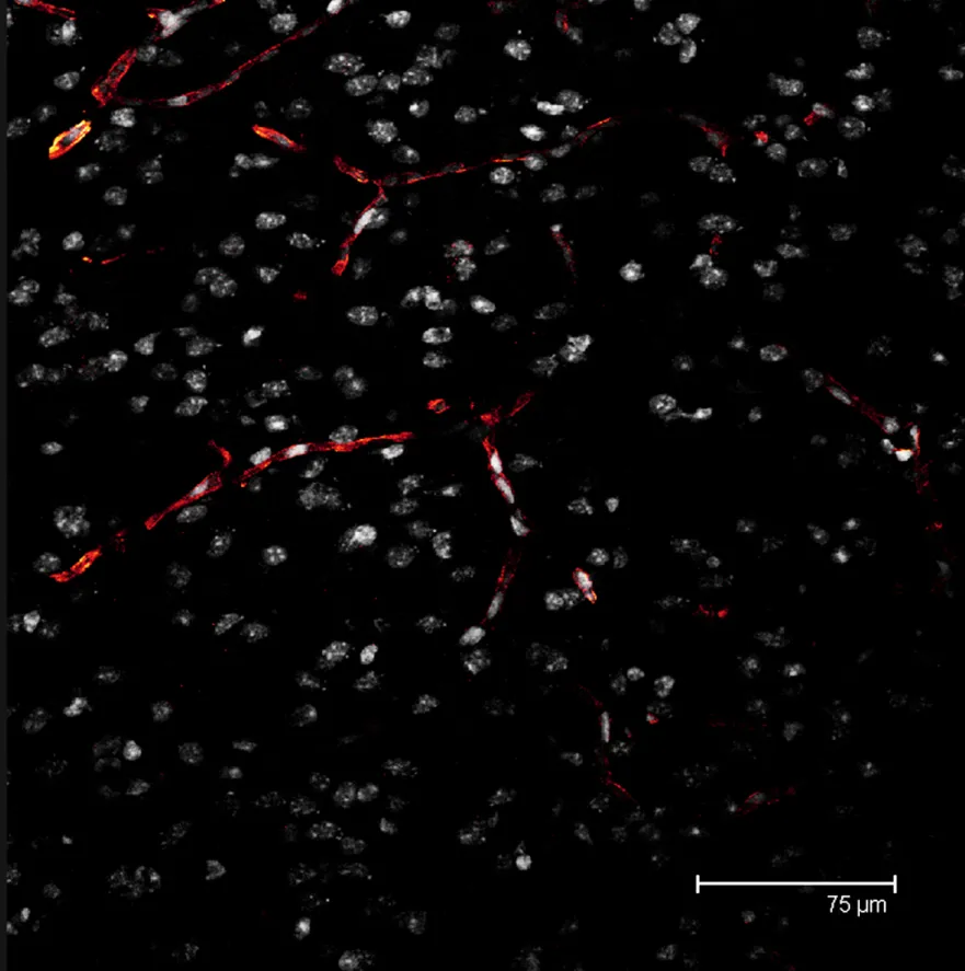 Overview Creator: Tanasarnsopaporn, Pakaporn Subject: Description:Brain Slide Average Image Depth of section: 2.85 µm Grey: Nuclei Glow: Vasculatures Date Original:2014, November 17 Language:eng Rights Rights Management:Original materials may be protected by the Copyright Law of the United States (more information). Technical Digitization Specifications:Saved as JPEG (level 12) in Photoshop CS6 Date Digital:Wed, 01/28/2015 - 20:00 Format:image/jpeg Type:Image