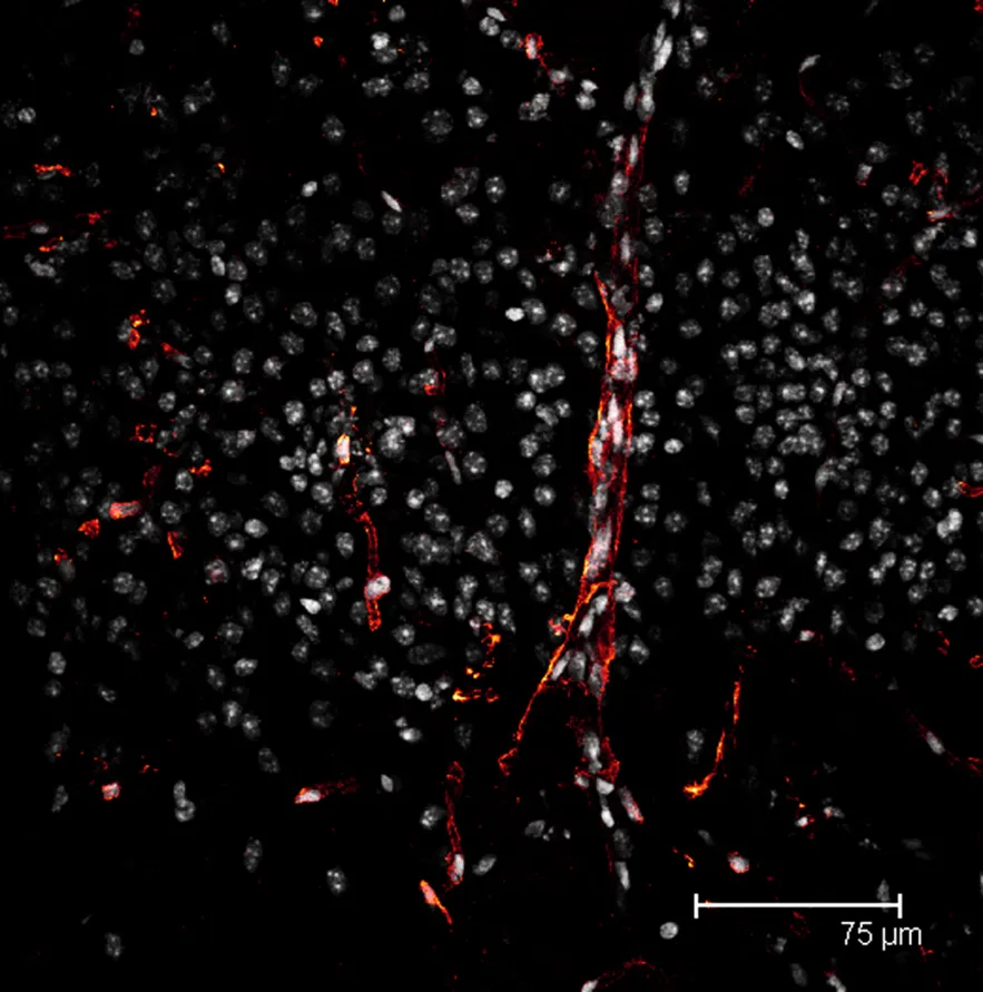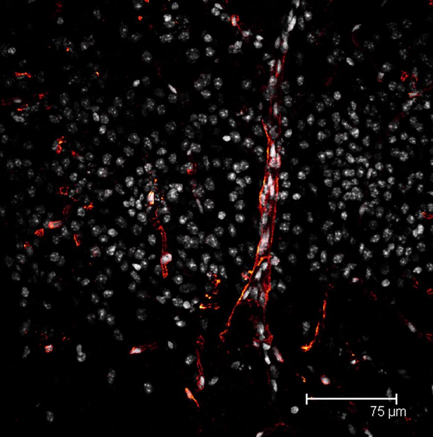 Overview Creator: Tanasarnsopaporn, Pakaporn Subject: Description:Brain Slide Average Image Depth of section: 4.88 µm Grey: Nuclei Glow: Vasculatures Date Original:2014, November 18 Language:eng Rights Rights Management:Original materials may be protected by the Copyright Law of the United States (more information). Technical Digitization Specifications:Saved as JPEG (level 12) in Photoshop CS6 Date Digital:Wed, 01/28/2015 - 20:00 Format:image/jpeg Type:Image
