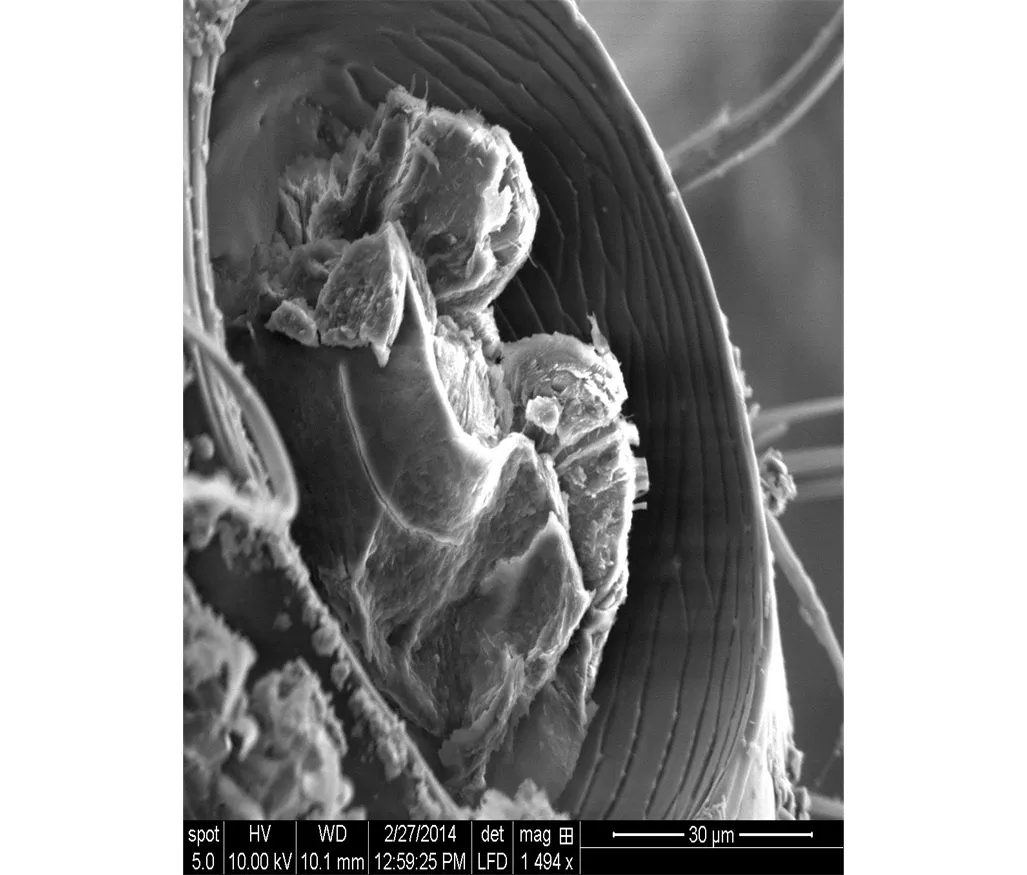 Overview Creator: Brase, Janpeter Subject: Description:Broken Joint of Large Beetle, Spot: 5, HV: 10.0, KV: 10.00, WD: 10.1, Mag: 1494x, Det: LFD Date Original:2014, February 27 Language:eng Rights Rights Management:Original materials may be protected by the Copyright Law of the United States (more information). Technical Digitization Specifications:Saved as JPEG (level 12) in Photoshop CS6 Date Digital:Mon, 01/19/2015 - 20:00 Format:image/jpeg Type:Image