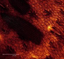 Autofluorescent Citronella leaf (Pelargonium citrosum)