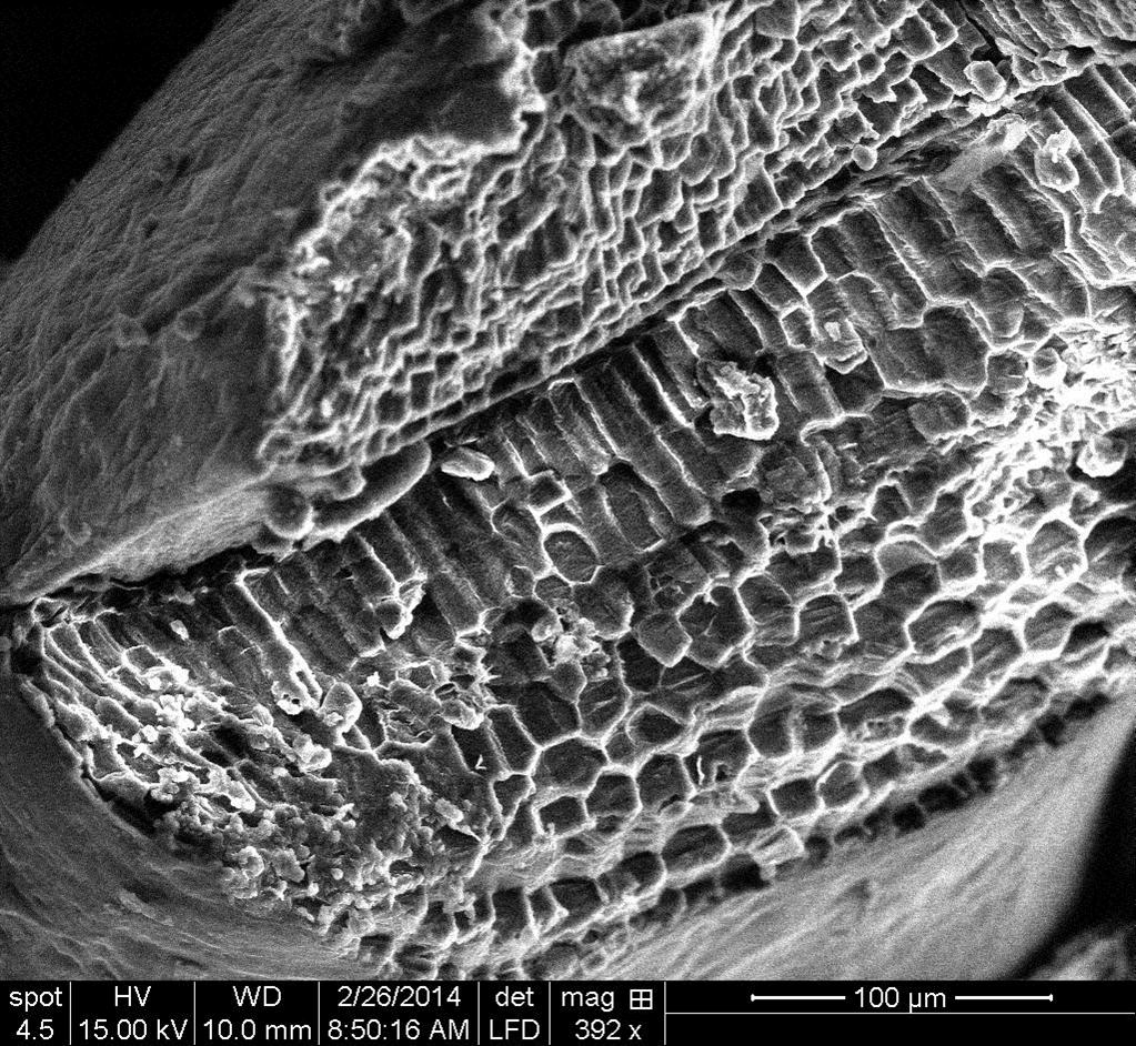 Overview Creator: Hagen-Peter, Hillary Subject: Description:Cell walls in quinoa grain, LoVac SE, Mag: 392x Date Original:2014, February 26 Language:eng Rights Rights Management:Original materials may be protected by the Copyright Law of the United States (more information). Technical Digitization Specifications:Saved as JPEG (level 12) in Photoshop CS6 Date Digital:Tue, 01/20/2015 - 20:00 Format:image/jpeg Type:Image