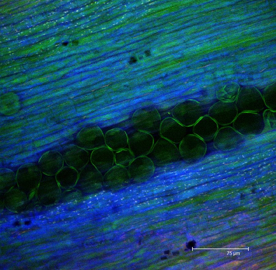 Overview Creator: Judd, Houston Subject: Description:Cherry Blossom (Prunus avium) Ovary with Ovules; Auto-Fluorescence; Average Image; Ovules in Green; Chromoplasts in Red Cytoplasm in Blue; Depth of Section 17.89μm Date Original:2012, April 26 Language:eng Rights Rights Management:Original materials may be protected by the Copyright Law of the United States (more information). Technical Digitization Specifications:Saved as JPEG (level 12) in Photoshop CS6 Date Digital:Mon, 02/02/2015 - 20:00 Format:image/jpeg Type:Image