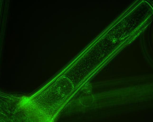 Overview Creator: Erikson, Heidi Subject: Description:Fluorescent overlay image of a tricomb on a citronella leaf (Pelargonium citrosum). Date Original:2012, April 14 Language:eng Rights Rights Management:Original materials may be protected by the Copyright Law of the United States (more information). Technical Digitization Specifications:Saved as JPEG (level 12) in Photoshop CS6 Date Digital:Sun, 02/01/2015 - 20:00 Format:image/jpeg Type:Image