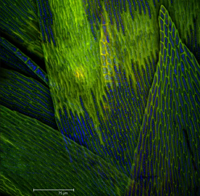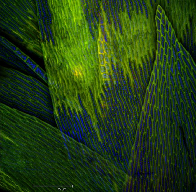 Average image of a 34.19-deep scan of autofluorescent Common Moss.