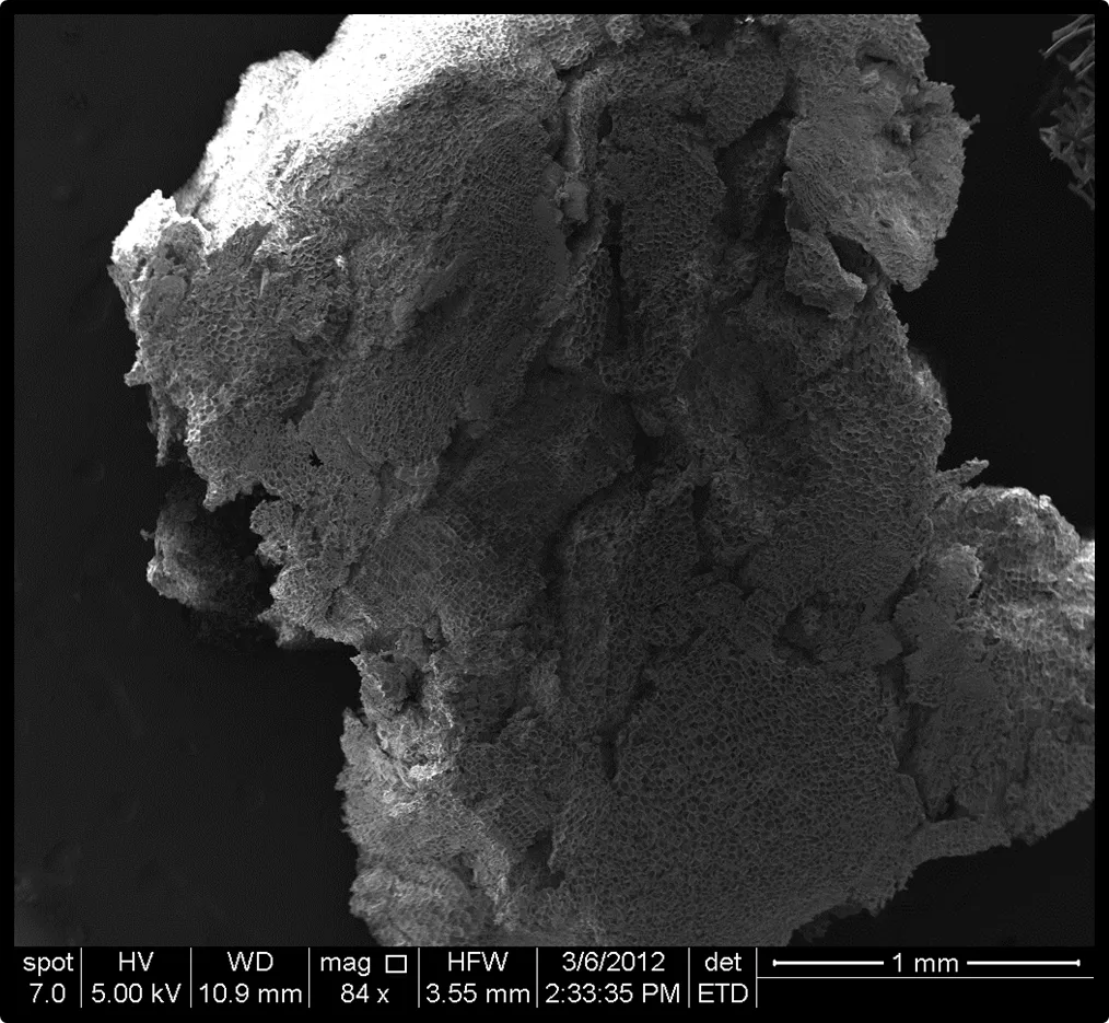 Overview Creator: Andie McCoon Subject: Description:Secondary Electron Image. An intact small piece from board. Date Original:2012, March 6 Language:eng Rights Rights Management:Original materials may be protected by the Copyright Law of the United States (more information). Technical Digitization Specifications: Saved as JPEG (level 12) in Photoshop CS5. Date Digital:Sun, 11/11/2012 - 20:00 Format:image/jpeg Type:Image