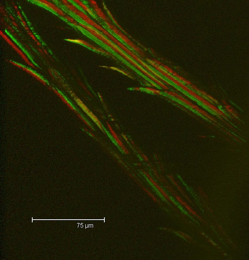 Overview Creator: Tousignant, Joey Subject: Description:Dark Pink Chrysanthemum Tricombs; 3D Stereo of Maximum Image of Series Scan; Channel 2; Depth Factor of 3; 67.16 μm Depth of Section Date Original:2013, April 2 Language:eng Rights Rights Management:Original materials may be protected by the Copyright Law of the United States (more information). Technical Digitization Specifications:Saved as JPEG (level 12) in Photoshop CS6 Date Digital:Sun, 02/08/2015 - 20:00 Format:image/jpeg Type:Image