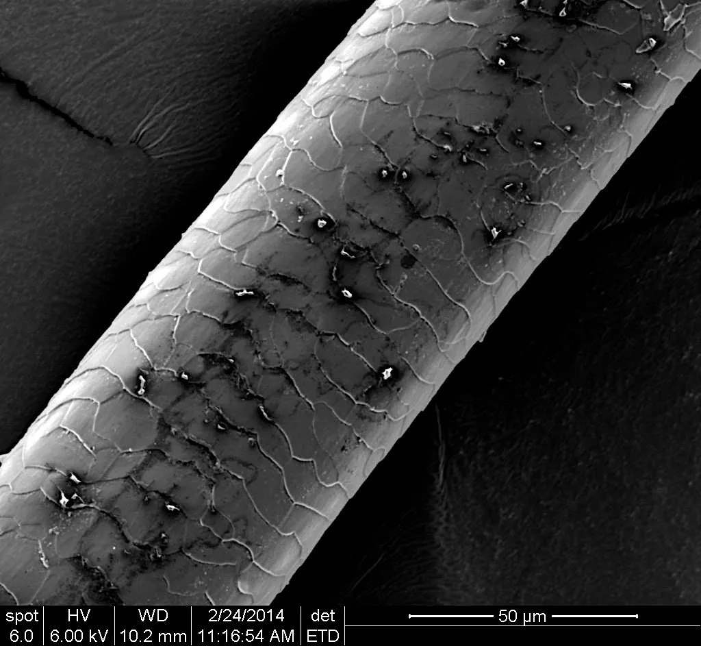 Overview Creator: Mauch, Elizabeth Subject: Description:Hair, secondary electron image Date Original:2014, February 24 Language:eng Rights Rights Management:Original materials may be protected by the Copyright Law of the United States (more information). Technical Digitization Specifications:Saved as JPEG (level 12) in Photoshop CS6 Date Digital:Sun, 01/25/2015 - 20:00 Format:image/jpeg Type:Image