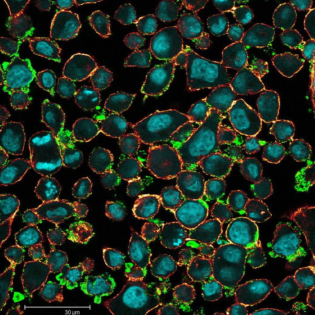 Overview Creator: Keever, Will Subject: Description:Hela cells; F-actin filaments in glow, Microtubule associated proteins in green, Nuclei stained in cyan Date Original:2012, March 30 Language:eng Rights Rights Management:Original materials may be protected by the Copyright Law of the United States (more information). Technical Digitization Specifications:Saved as JPEG (level 12) in Photoshop CS6 Date Digital:Mon, 02/02/2015 - 20:00 Format:image/jpeg Type:Image
