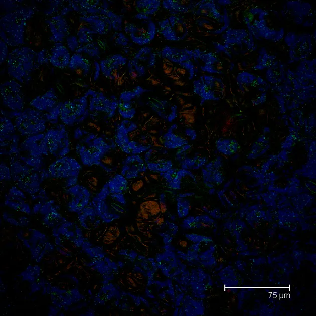 Overview Creator: Pietryka, Megan Subject: Description:Jade Plant:Crassula ovata Series scan Depth of section: 10.18 μm Average Image Stoma in green Sugars in glow Wax in blue Date Original:2014, November 12 Language:eng Rights Rights Management:Original materials may be protected by the Copyright Law of the United States (more information). Technical Digitization Specifications:Saved as JPEG (level 12) in Photoshop CS6 Date Digital:Tue, 01/27/2015 - 20:00 Format:image/jpeg Type:Image