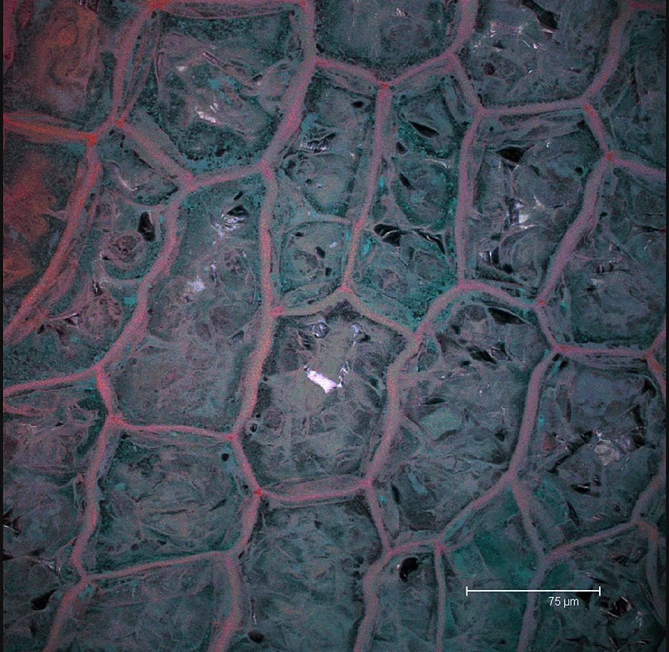 Overview Creator: LeValley, Kristy Subject: Description:Single scan auto-fluorecent image of Lilium asiatica (Asiatic Lily) petal. Epidermal cells in cyan, plasma membrane in magenta, chloroplast in glow Date Original:2013, April 3 Language:eng Rights Rights Management:Original materials may be protected by the Copyright Law of the United States (more information). Technical Digitization Specifications:Saved as JPEG (level 12) in Photoshop CS6 Date Digital:Wed, 02/04/2015 - 20:00 Format:image/jpeg Type:Image
