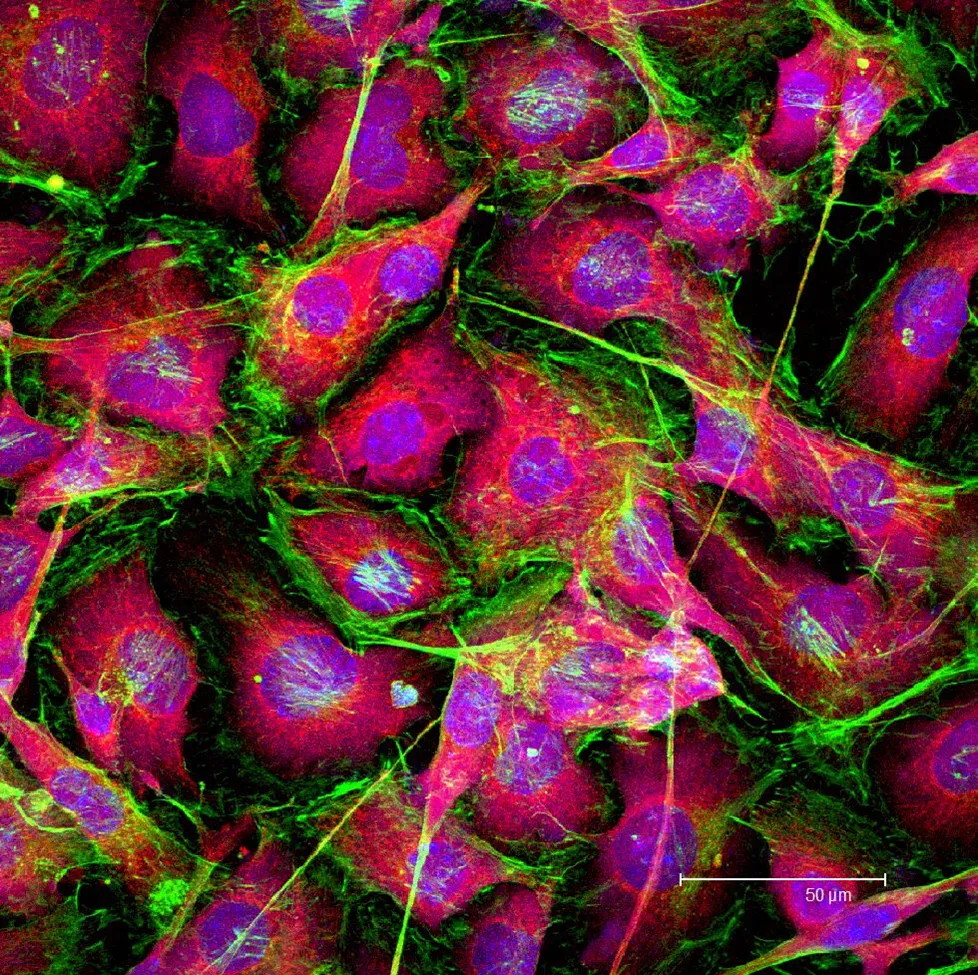 Overview Creator: Schwallie, Ryan Subject: Description:Maximum projection of B16 cells. F-actin depicted in green, mitochondria in red and nuclei in blue. Date Original:2014, October 17 Language:eng Rights Rights Management:Original materials may be protected by the Copyright Law of the United States (more information). Technical Digitization Specifications:Saved as JPEG (level 12) in Photoshop CS6 Date Digital:Wed, 01/28/2015 - 20:00 Format:image/jpeg Type:Image