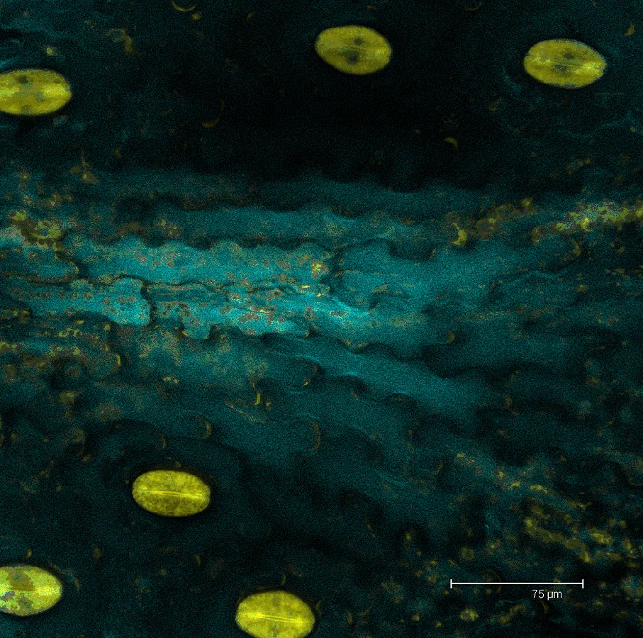 Overview Creator: Tousignant, Joey Subject: Description:Nephrolepis exalta; Average Image of Series Scan; 15.87μm Depth of Section; Stomata and Chloroplasts in Yellow; Epidermal Cells in Glow Date Original:2013, April 22 Language:eng Rights Rights Management:Original materials may be protected by the Copyright Law of the United States (more information). Technical Digitization Specifications:Saved as JPEG (level 12) in Photoshop CS6 Date Digital:Sun, 02/08/2015 - 20:00 Format:image/jpeg Type:Image