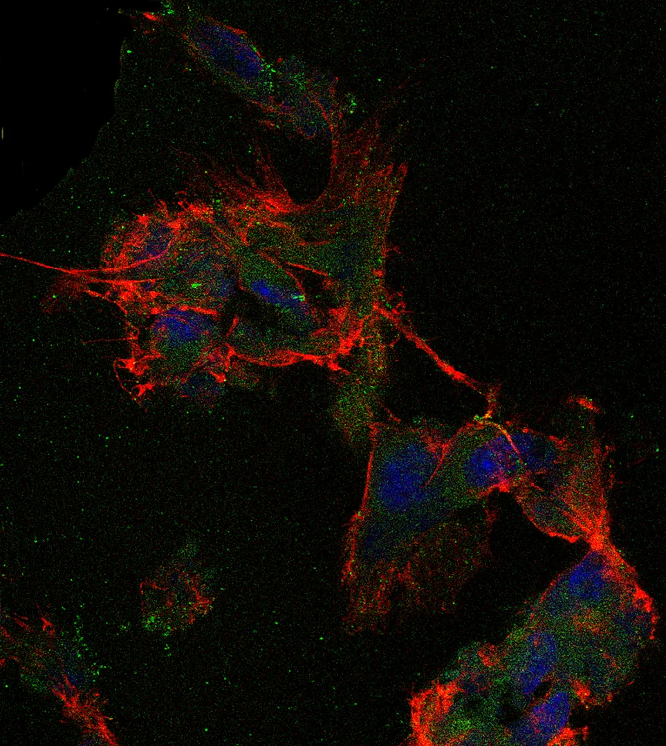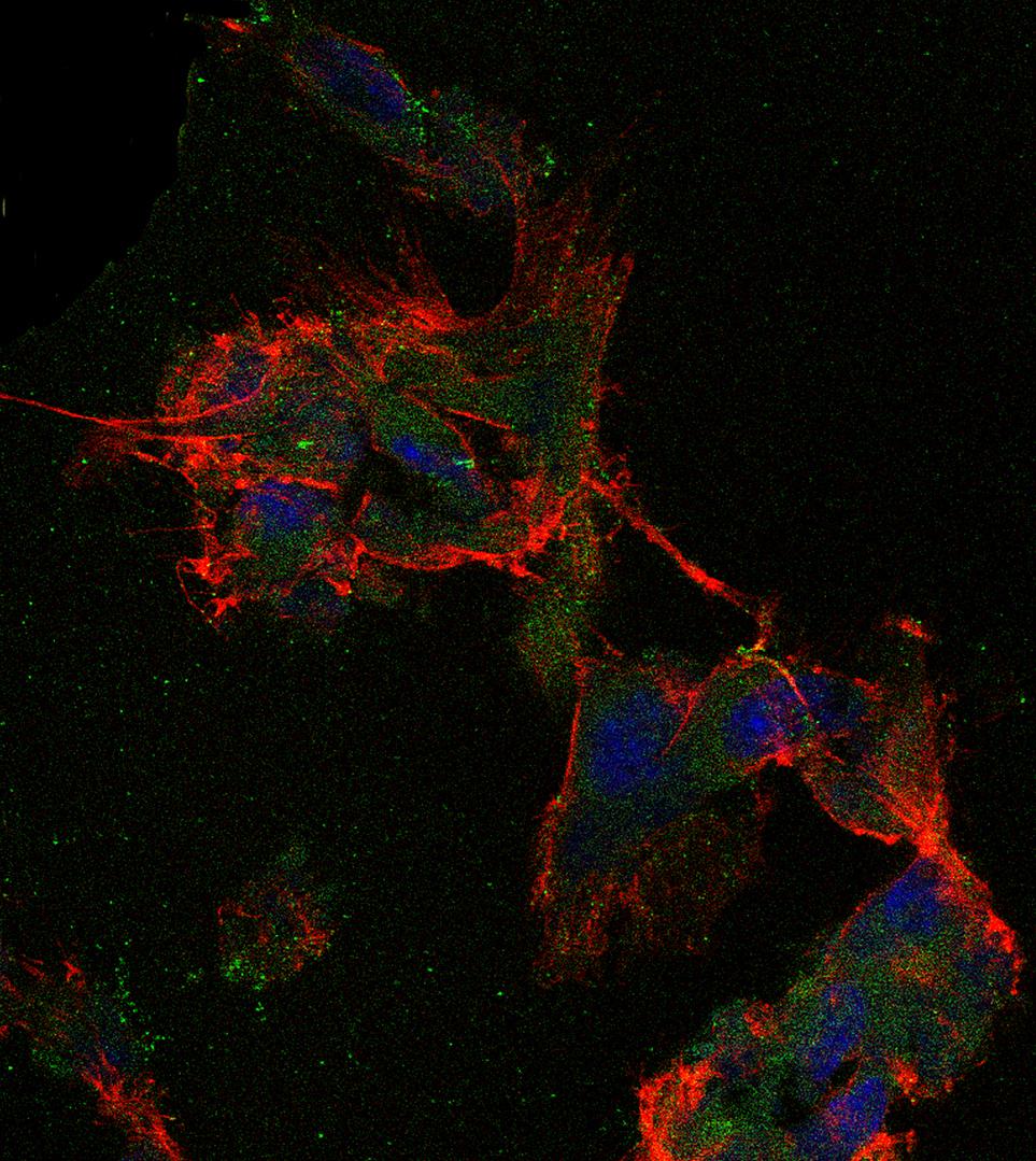 Overview Creator: Ngounou, Armand Subject: Description:NIH3T3 cells; Average image; Phalloidin (F-actin) in red; β-tubulin in green; Nuclei in blue; Depth of section 7.98 μm Date Original:2012, February 29 Language:eng Rights Rights Management:Original materials may be protected by the Copyright Law of the United States (more information). Technical Digitization Specifications:Saved as JPEG (level 12) in Photoshop CS6 Date Digital:Mon, 02/02/2015 - 20:00 Format:image/jpeg Type:Image