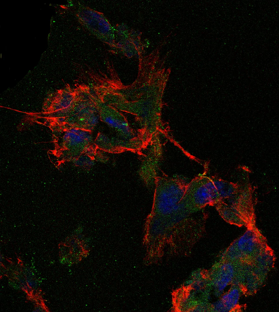 Overview Creator: Ngounouwetie, Armand Subject: Description:Average image. Depth of section: 7.98 μm. Phalloidin (F-actin) in red. β-tubulin in green. Nuclei in blue. Date Original:2012, February 29 Language:eng Rights Rights Management:Original materials may be protected by the Copyright Law of the United States (more information). Technical Digitization Specifications: Saved as JPEG (level 12) in Photoshop CS5. Date Digital:Tue, 10/30/2012 - 21:00 Format:image/jpeg Type:Image