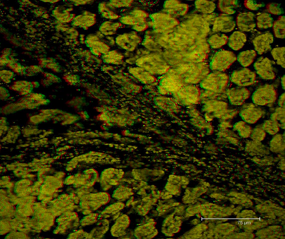 Overview Creator: Rescott, Marissa Subject: Description:Average 3D stereo image of series scanned 25.24 μm section from an autofluorescent Pelargonium citrosa (mosquito plant) leaf. Depth factor of 2.7 Date Original:2013, March 28 Language:eng Rights Rights Management:Original materials may be protected by the Copyright Law of the United States (more information). Technical Digitization Specifications:Saved as JPEG (level 12) in Photoshop CS6 Date Digital:Thu, 02/05/2015 - 20:00 Format:image/jpeg Type:Image
