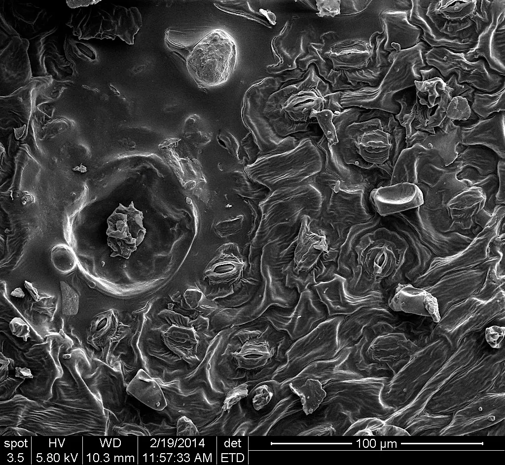 Overview Creator: Mauch, Elizabeth Subject: Description:Peppermint Leaf, secondary electron image Date Original:2014, February 19 Language:eng Rights Rights Management:Original materials may be protected by the Copyright Law of the United States (more information). Technical Digitization Specifications:Saved as JPEG (level 12) in Photoshop CS6 Date Digital:Sun, 01/25/2015 - 20:00 Format:image/jpeg Type:Image