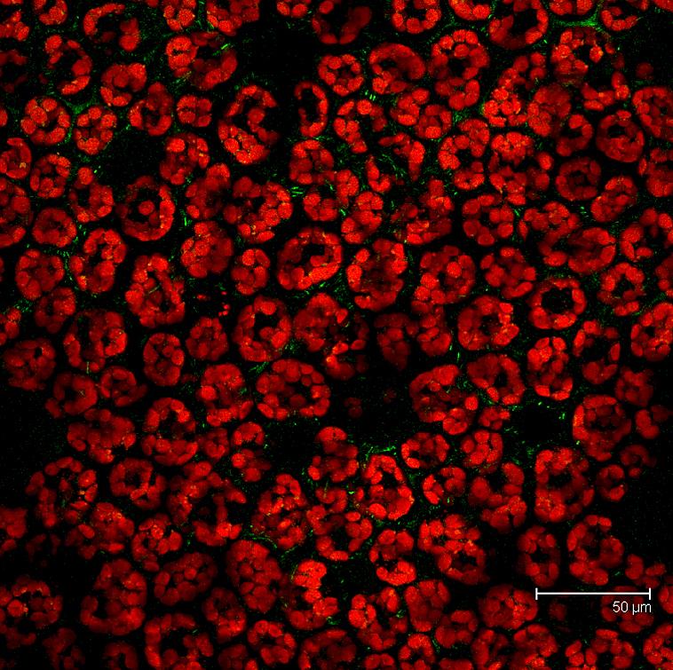 Maximum projection series scan an auto-fluorescent Philodendron hederaceum (Ivy) leaf.