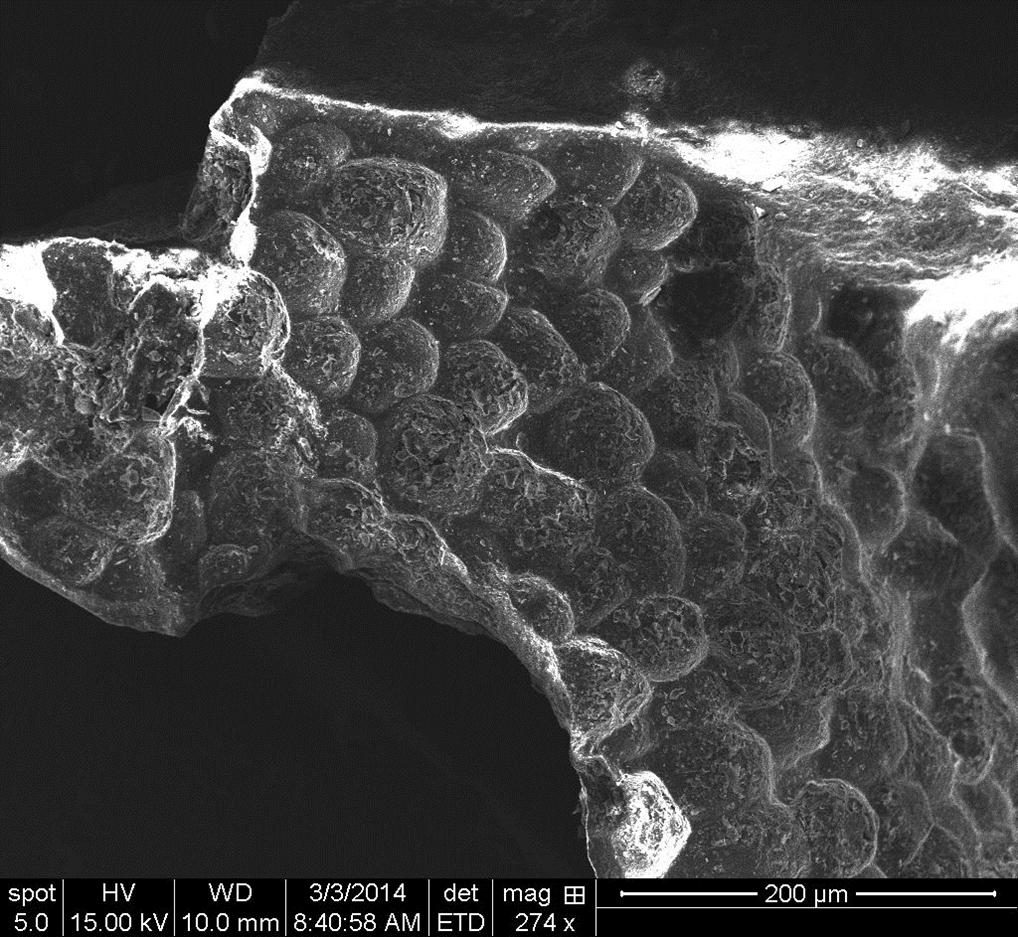 Pitted grain from sands of Marbella, Spain, SE, Mag: 274x