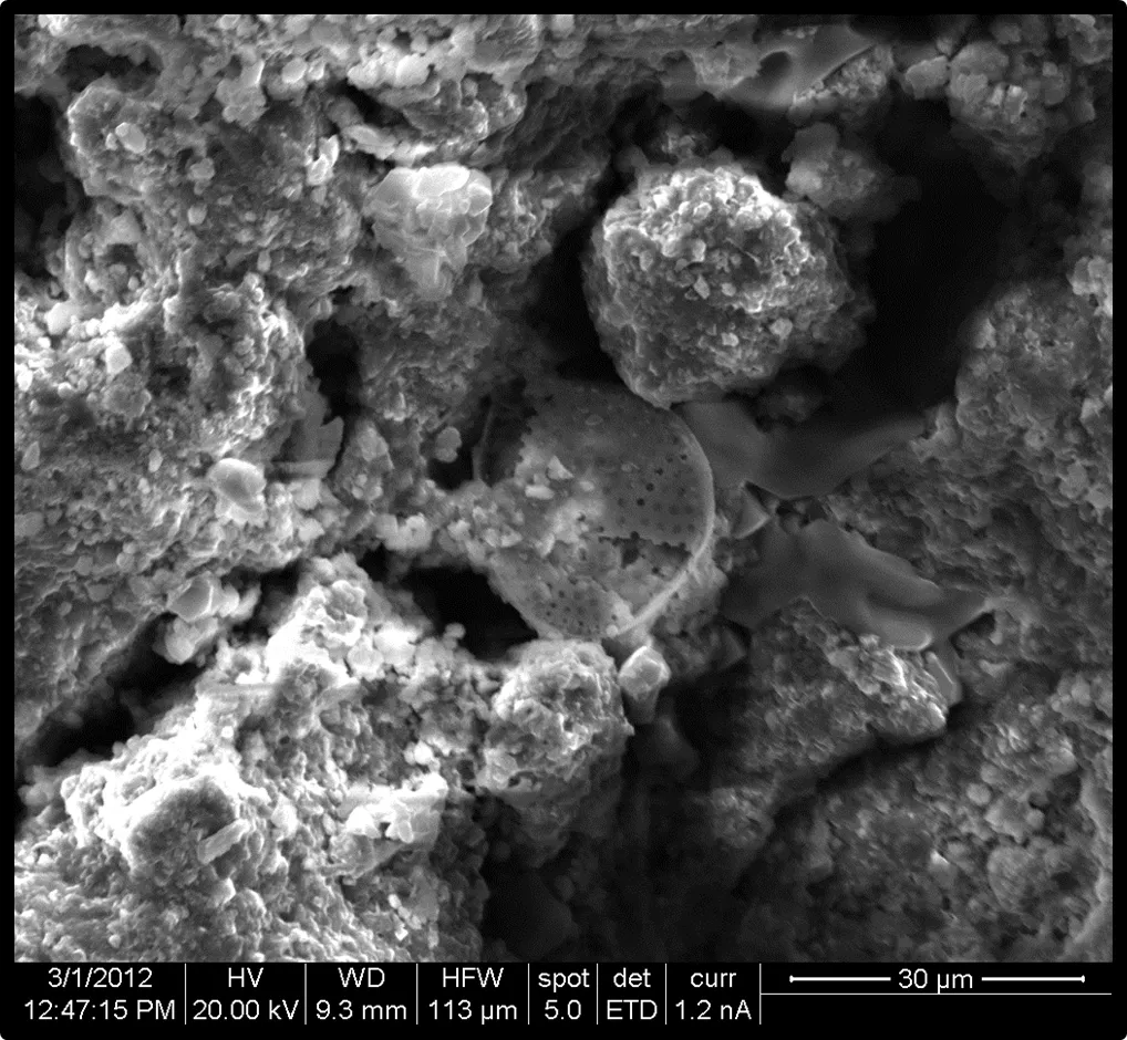 Overview Creator: Andie McCoon Subject: Description:Secondary Electron Image. Sample of sediment with embedded piece of skeletal microorganism from Playa Conchal, Costa Rica. Date Original:2012, February 9 Language:eng Rights Rights Management:Original materials may be protected by the Copyright Law of the United States (more information). Technical Digitization Specifications: Saved as JPEG (level 12) in Photoshop CS5. Date Digital:Sun, 11/11/2012 - 20:00 Format:image/jpeg Type:Image