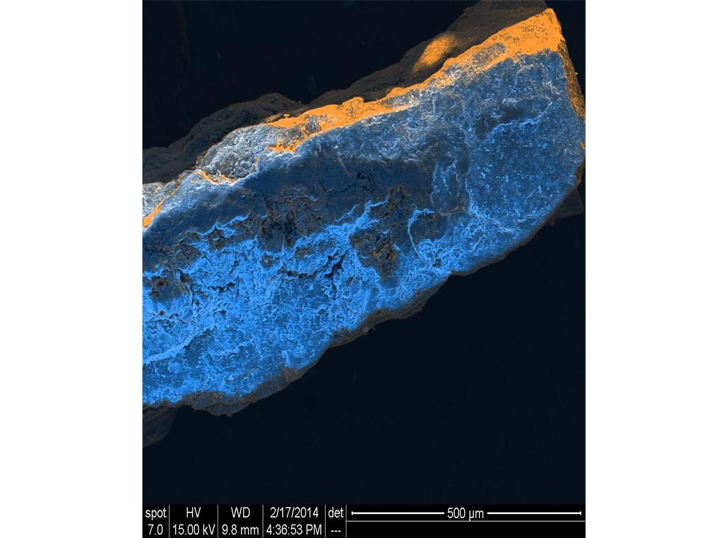 Overview Creator: Caramia, Sierra Subject: Description:Sand grain sample 1 from Marbella, Spain; 15.00 kV, spot size 7; mixed image Date Original:2014, February 17 Language:eng Rights Rights Management:Original materials may be protected by the Copyright Law of the United States (more information). Technical Digitization Specifications:Saved as JPEG (level 12) in Photoshop CS6 Date Digital:Tue, 01/20/2015 - 20:00 Format:image/jpeg Type:Image