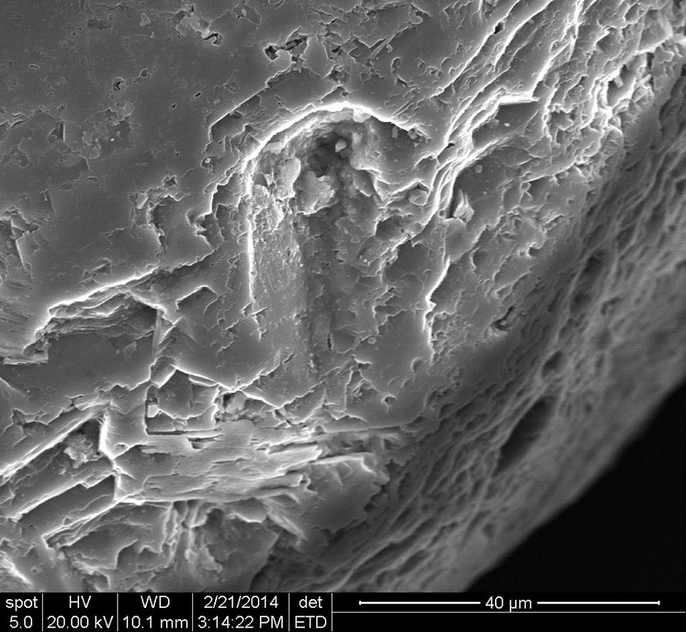 Sand Grain from Wijkaanzee, NED, High Vacuum, SE Image, WD: 10.1 mm, HV: 20.00 kV, Spot size: 5.0, magnification 1627x