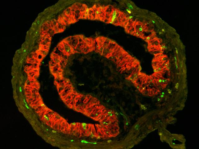 The following images from Schreiber’s research were part of Morphographica, a joint art installation with SLU's Mindy Pitre and biological anthropologist Pamela Mayne Correia, from the University of Alberta in Canada. The exhibit included photomicrographs of biological specimens, including frogs, fish and human beings. The artists selected images for their aesthetic appeal and scientific value as a means to explore the intersection of art and science.