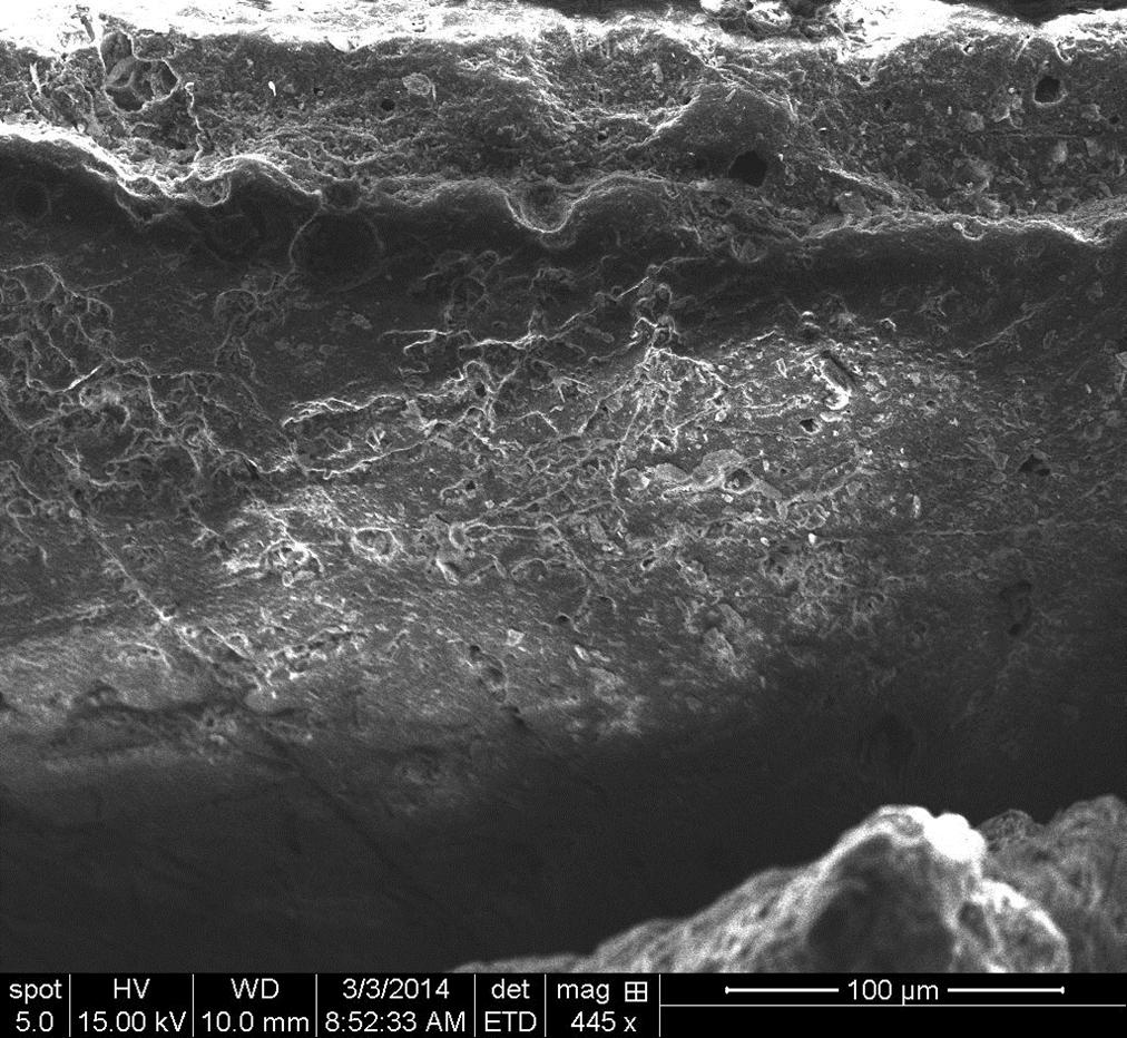 Overview Creator: Hagen-Peter, Hillary Subject: Description:Side detail of shell from sands of Marbella, Spain, SE, Mag: 445x Date Original:2014, March 3 Language:eng Rights Rights Management:Original materials may be protected by the Copyright Law of the United States (more information). Technical Digitization Specifications:Saved as JPEG (level 12) in Photoshop CS6 Date Digital:Tue, 01/20/2015 - 20:00 Format:image/jpeg Type:Image