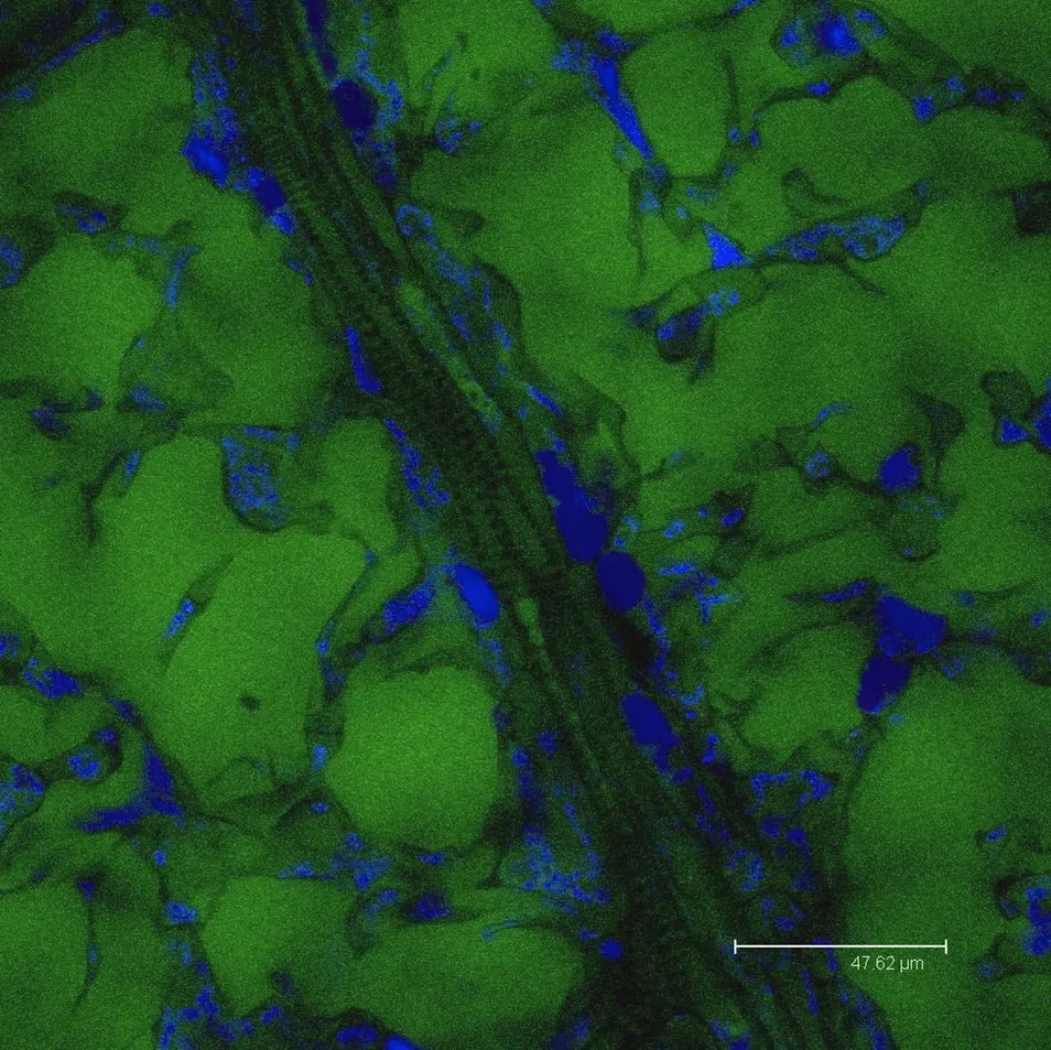 Single scan image of the autofluorescence of Paeonia lactiflora,