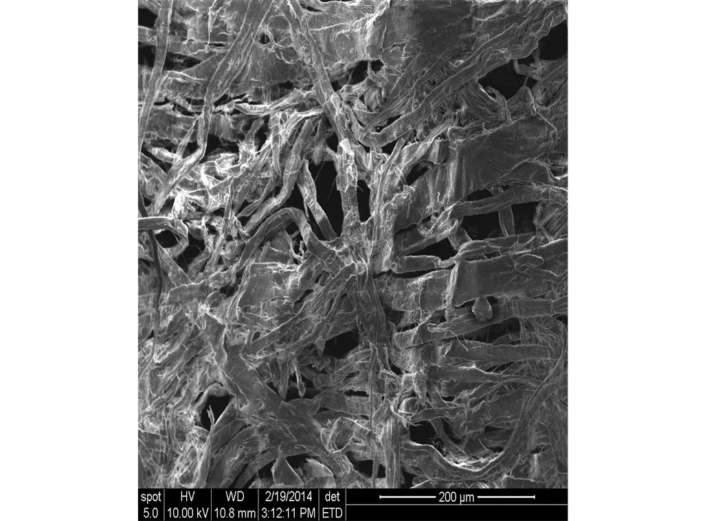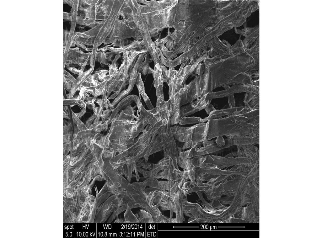 Toilet paper sample from Johnson Hall of Science women’s bathroom; 10.00 kV, spot size 5; high vacuum, secondary electron