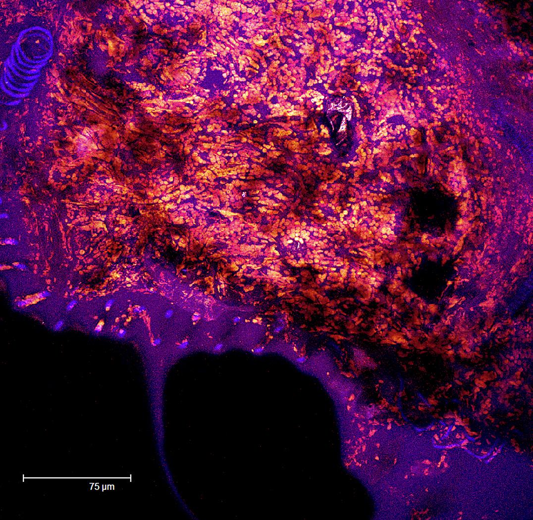 Overview Creator: Mullin, Kathryn Subject: Description:Max Image. Depth of section: 12.21 µm. Annular rings shown in blue and trachetes shown in glow. Date Original:2011, November 8 Language:eng Rights Rights Management:Original materials may be protected by the Copyright Law of the United States (more information). Technical Digitization Specifications:Saved as JPEG (level 12) in Photoshop CS5 with Unsharp Mask of 60:1. Date Digital:Sun, 02/05/2012 - 20:00 Format:image/jpeg Type:Image