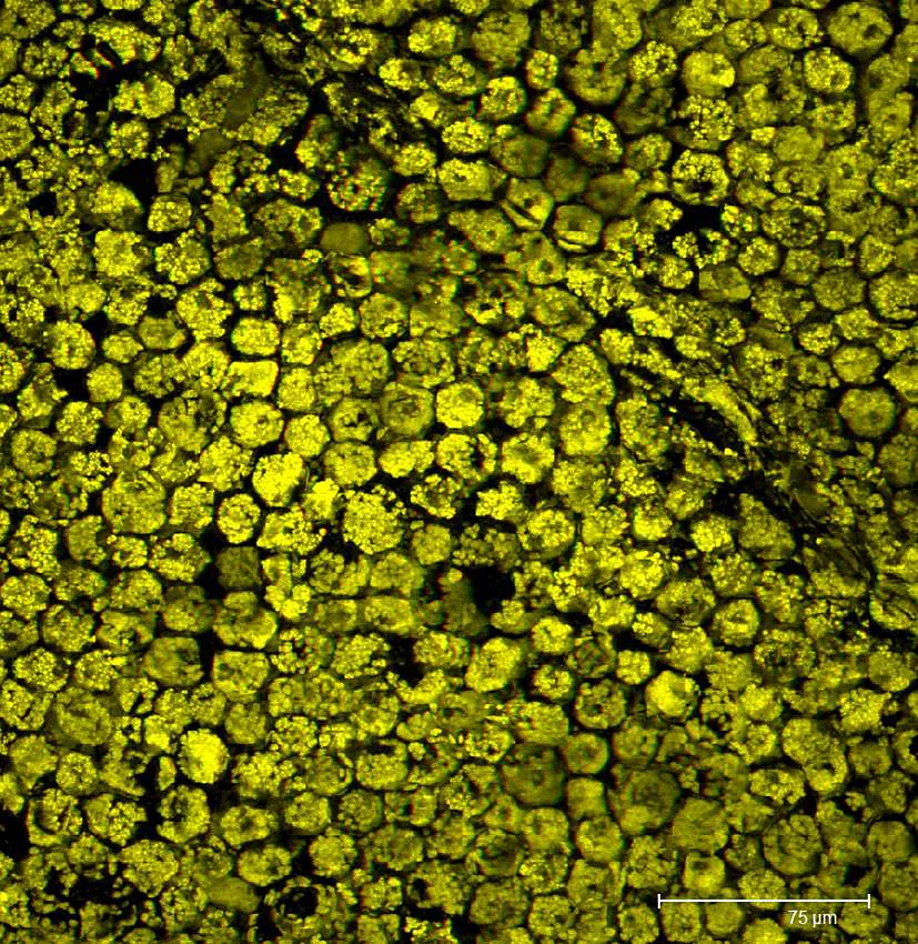 Overview Creator: Reynolds, Sarah Subject: Description:Stereo Projection. Depth of section: 18.72μm. Chlorophyll are shown in yellow as 3D. Date Original:2011, October 26 Language:eng Rights Rights Management:Original materials may be protected by the Copyright Law of the United States (more information). Technical Digitization Specifications:Saved as JPEG (level 12) in Photoshop CS5 with Unsharp Mask of 60:1. Date Digital:Sun, 01/22/2012 - 20:00 Format:image/jpeg Type:Image