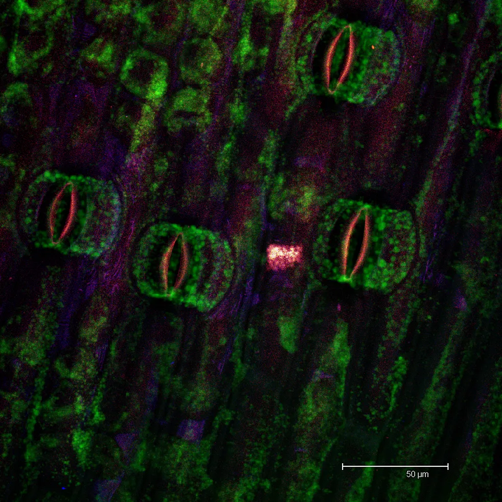 Overview Creator: Nowack, Cam Subject: Description:Average projection of the underside of a tulip leaf (Tulipa genseriana). Chlorophyll shown in green and unidentified guard cell parts in glow and chlorophyll in magenta. Depth of section = 15.24 μm Date Original:2013, April 16 Language:eng Rights Rights Management:Original materials may be protected by the Copyright Law of the United States (more information). Technical Digitization Specifications:Saved as JPEG (level 12) in Photoshop CS6 Date Digital:Wed, 02/04/2015 - 20:00 Format:image/jpeg Type:Image