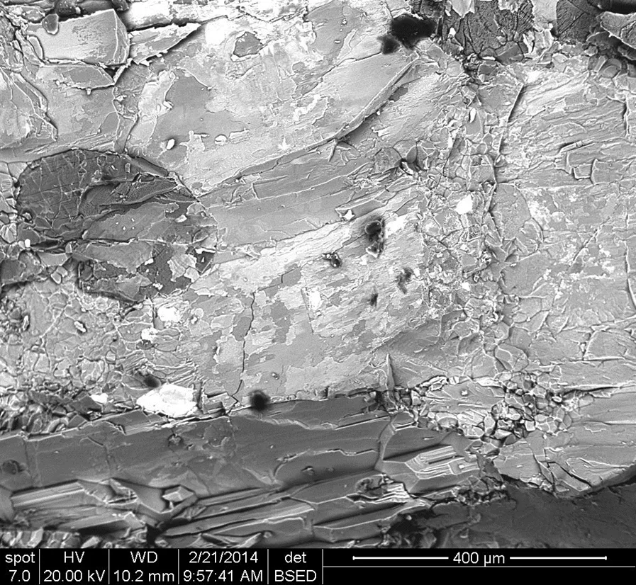 Overview Creator: Harrington, Meg Subject: Description:High Vacuum Backscattered Electron Image of Unknown Rock #2 from Glenmeal State Forest in Canton, NY Date Original:2014, February 21 Language:eng Rights Rights Management:Original materials may be protected by the Copyright Law of the United States (more information). Technical Digitization Specifications:Saved as JPEG (level 12) in Photoshop CS6 Date Digital:Thu, 01/22/2015 - 20:00 Format:image/jpeg Type:Image