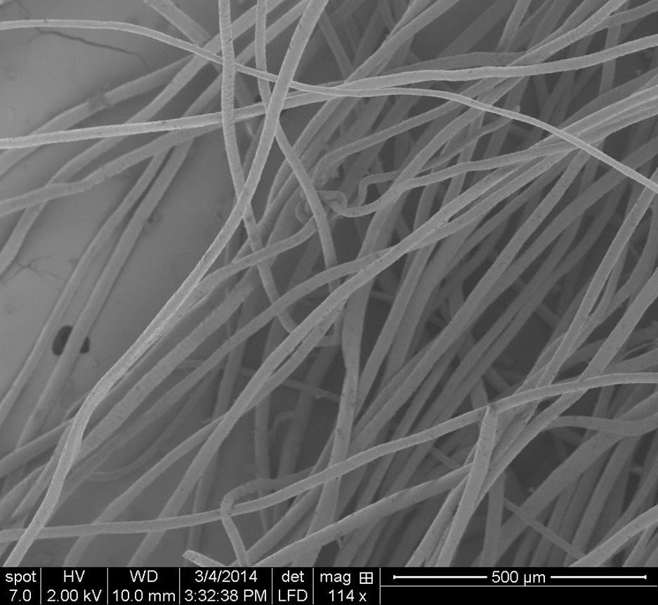 Winter Hat Fiber, Low Vacuum, SE Image, WD: 10.0 mm, HV: 2.00 kV, Spot size: 7.0, Magnification 114x, Pressure: 0.23 Torr