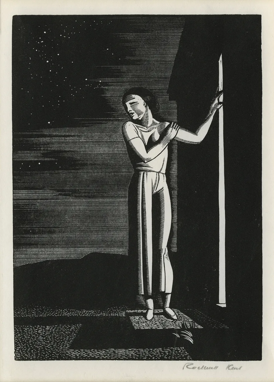 Overview Creator: Kent, Rockwell, 1882-1971 Subject: Source:Print, wood engraving, 17 x 12 cm., signed Date Original:1933 Language:eng Rights Rights Management:Original materials may be protected by the Copyright Law of the United States (more information). Technical Digitization Specifications:Scanned at 600ppi on Epson 1000XL scanner as 48-bit RGB uncompressed TIFF images. Images resized to 2000 pixels wide, 150 dpi, and saved as JPEG (level 10) in Photoshop CS5 with Unsharp Mask of 60:1. Date Digital:Tue, 10/02/2012 - 21:00 Format:image/jpeg Type:Still Image Location Series:2 Box:3