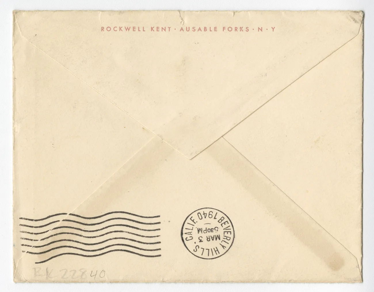 Overview Creator: Kent, Rockwell, 1882-1971 Subject: Source:Original letter: ink on paper, 1 p. Date Original:1940, February 28 Language:eng Rights Rights Management:Original materials may be protected by the Copyright Law of the United States (more information). Technical Digitization Specifications:Scanned at 600ppi on Epson 1000XL scanner as 48-bit RGB uncompressed TIFF images. Images resized to 2000 pixels wide, 150 dpi, and saved as JPEG (level 10) in Photoshop CS5 with Unsharp Mask of 60:1. Date Digital:Thu, 10/11/2012 - 21:00 Format:image/jpeg Type:Text Location Series:1 Box:1 Folder:10
