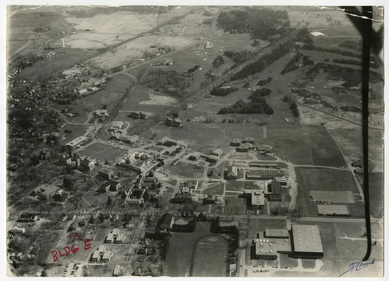 Explore this collection building Overview Creator: D.P. Church Subject: St. Lawrence University -- HistorySt. Lawrence University -- BuildingsSt. Lawrence University -- PhotographsSt. Lawrence University -- Aerial Photographs Description:The entire campus in the mid-1970s looking easterly. The only building not pictured is Appleton Arena. Coverage:Canton, NY Source:photograph, b & w, 10" h x 13 3/4" w Date Original:1973 Decade:Wed, 12/31/1969 - 20:00 Rights Rights Management:Original materials may be protected by the Copyright Law of the United States (more information). Resource Identifier:ODY Special Collections, Archives, RG2, Series 3.2 B&G Campus Box 9 Publisher:St. Lawrence University Contributor:Dwight P. Church Technical Digitization Specifications:Scanned at 600ppi on Epson 1000XL scanner as 48-bit RGB uncompressed TIFF images. Images resized to 2000 pixels wide, 150 dpi, and saved as JPEG (level 10) in Photoshop CS5 with Unsharp Mask of 60:1. Date Digital:Sun, 01/15/2012 - 20:00 Format:image/jpeg Type:Still Image Contributing Institution:St. Lawrence University Location Series:3 Box:9 Folder:1970s