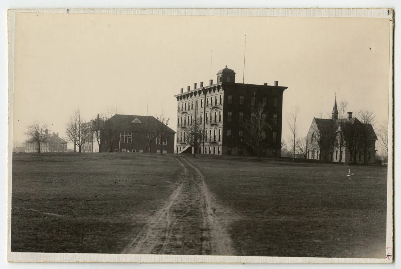 Explore this collection building Overview Creator: unknown Subject: St. Lawrence University -- HistorySt. Lawrence University -- BuildingsSt. Lawrence University -- PhotographsSt. Lawrence University -- Panoramic Photographs Description:A view of campus looking south from the back of Richardson Hall, circa 1910. Left to right: Cook Hall (part of the School of Agriculture at SLU, later renamed Piskor Hall), Carnegie Hall, Gymnasium, Richardson and Fisher Hall. Coverage:Canton, NY Source:photograph, b & w; 9 1/2" w x 6" h Date Original:[190?] Decade:Sun, 12/31/1899 - 19:45 Rights Rights Management:Original materials may be protected by the Copyright Law of the United States (more information). Resource Identifier:ODY Special Collections, Archives, RG2, Series 3.2 B&G Campus Box 8 Publisher:St. Lawrence University Contributor:unknown Technical Digitization Specifications:Scanned at 600ppi on Epson 1000XL scanner as 48-bit RGB uncompressed TIFF images. Images resized to 2000 pixels wide, 150 dpi, and saved as JPEG (level 10) in Photoshop CS5 with Unsharp Mask of 60:1. Date Digital:Mon, 01/02/2012 - 20:00 Format:image/jpeg Type:Still Image Contributing Institution:St. Lawrence University Location Series:3 Box:8 Folder:1900-1925