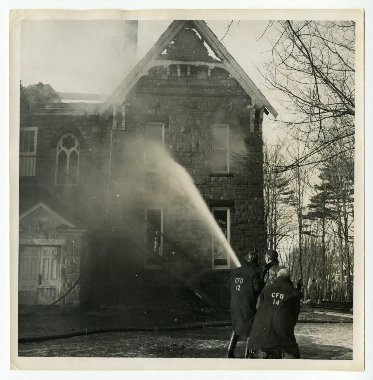 Explore this collection building Overview Creator: unknown Subject: St. Lawrence University -- HistorySt. Lawrence University -- BuildingsSt. Lawrence University -- PhotographsProtestant theological seminaries -- New York (State) -- Canton, NY Description:Canton Fire Department volunteers were called the night of December 11, 1951 to a blaze at Fisher Hall. No one was hurt but the fire destroyed the building, which was razed a few months later. Less than three years later, Atwood Hall was completed and became the new home to the University's Universalist Theological Seminary. Coverage:Canton, NY Source:photograph, b & w, 8" x 8" Decade:Sat, 12/31/1949 - 20:00 Rights Rights Management:Original materials may be protected by the Copyright Law of the United States (more information). Resource Identifier:ODY Special Collections, Archives, RG2, Series 3.2 B&G Campus Box 13 Publisher:St. Lawrence University Contributor:unknown Technical Digitization Specifications:Scanned at 600ppi on Epson 1000XL scanner as 48-bit RGB uncompressed TIFF images. Images resized to 2000 pixels wide, 150 dpi, and saved as JPEG (level 10) in Photoshop CS5 with Unsharp Mask of 60:1. Date Digital:Wed, 02/08/2012 - 20:00 Format:image/jpeg Type:Still Image Contributing Institution:St. Lawrence University Location Fisher Hall Series:3 Box:13