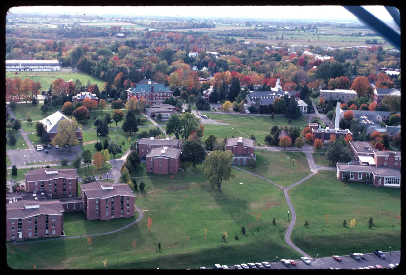 Explore this collection building Overview Creator: unknown Subject: St. Lawrence University -- HistorySt. Lawrence University -- BuildingsSt. Lawrence University -- PhotographsSt. Lawrence University -- Aerial Photographs Description:A view looking west from behind Lee and Rebert Hall dormitories taken in 1989. Madill Hall is to the center left, with Piskor and the former bookstore/health center to the right of that. In 15 years, this photo would be dominated by the Sullivan Student Center. Coverage:Canton, NY Source:Photographic slide, color, 15/16" h x 1 5/16" w Date Original:1989 Decade:Mon, 12/31/1979 - 20:00 Rights Rights Management:Original materials may be protected by the Copyright Law of the United States (more information). Resource Identifier:ODY Special Collections, Archives, RG2, Series 3.2 B&G Campus Box 9 Publisher:St. Lawrence University Contributor:unknown Technical Digitization Specifications:Scanned with Nikon Super CoolScan 9000 ED scanner as uncompressed TIFF images resized to 2000 pixels wide, 150 dpi, and saved as JPEG (level 10) in Photoshop CS5 with unsharp mask of 60:1. Date Digital:Mon, 01/30/2012 - 20:00 Format:image/jpeg Type:Still Image Contributing Institution:St. Lawrence University Location Series:3 Box:9 Folder:Campus Aerial Shots
