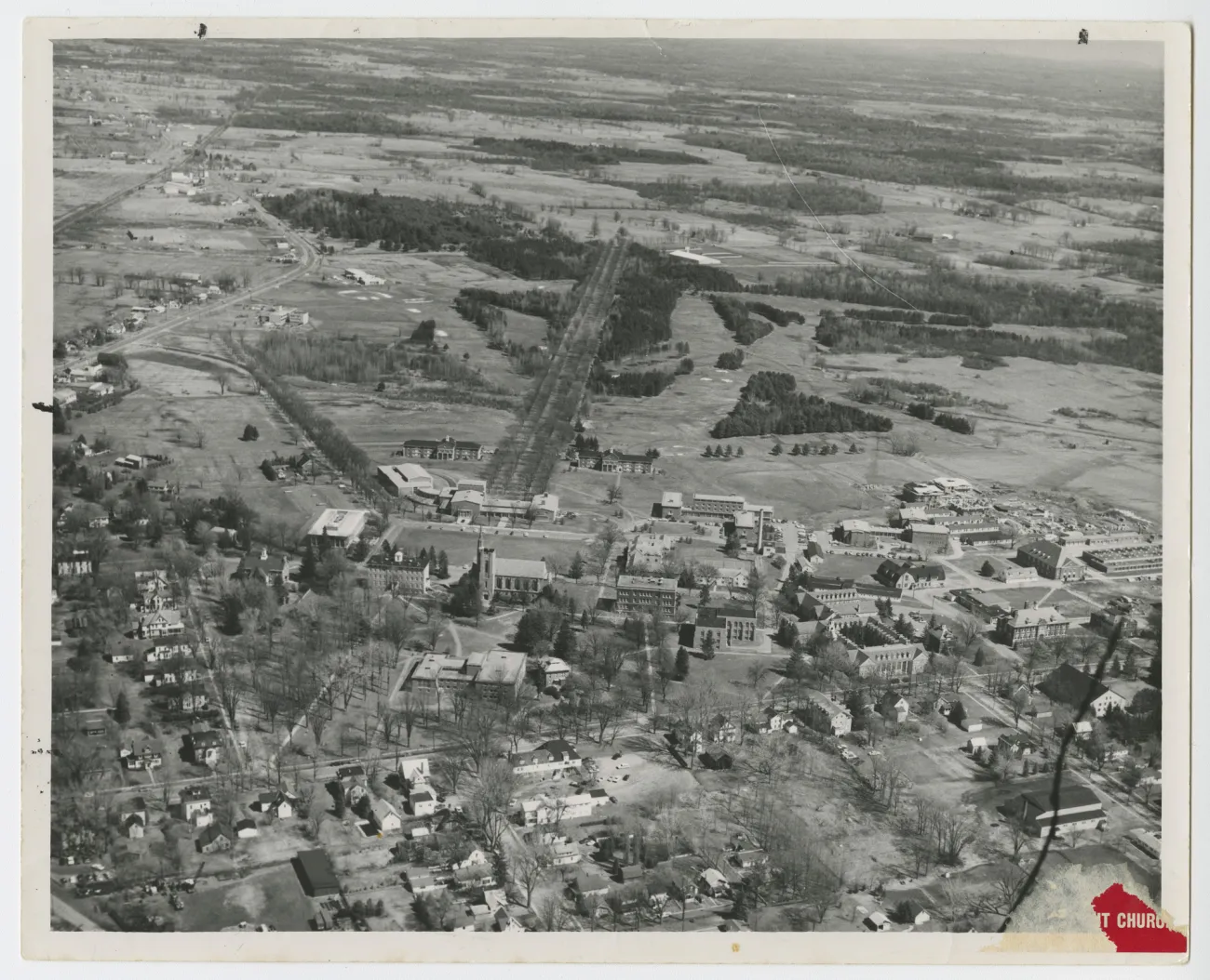 Explore this collection building Overview Creator: Church, Dwight P. Subject: St. Lawrence University -- HistorySt. Lawrence University -- BuildingsSt. Lawrence University -- PhotographsSt. Lawrence University -- Aerial Photographs Description:The southern part of campus was bustling with construction and demolition activity in the late 1960s as can be seen in this photo looking east. Whitman Hall dormitory (center) is complete, as is Rebert Hall, but construction of Lee Hall dorm and the Eben Holden Dining Center are in full swing (right), even before much of the temporary student housing and the barns that once were used by Canton ATC have been taken down. Coverage:Canton, NY Source:Photograph, b & w, 8" h x 10" w Date Original:[196?] Decade:Thu, 12/31/1959 - 20:00 Rights Rights Management:Original materials may be protected by the Copyright Law of the United States (more information). Resource Identifier:ODY Special Collections, Archives, RG2, Series 3.2 B&G Campus Box 8 Publisher:St. Lawrence University Contributor:Dwight P. Church Technical Digitization Specifications:Scanned at 600ppi on Epson 1000XL scanner as 48-bit RGB uncompressed TIFF images. Images resized to 2000 pixels wide, 150 dpi, and saved as JPEG (level 10) in Photoshop CS5 with Unsharp Mask of 60:1. Date Digital:Mon, 01/16/2012 - 20:00 Format:image/jpeg Type:Still Image Contributing Institution:St. Lawrence University Location Series:3 Box:8 Folder:1960s