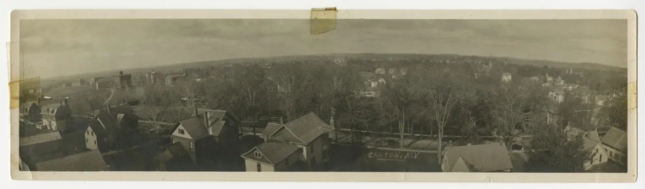 Explore this collection building Overview Creator: unknown Subject: St. Lawrence University -- HistorySt. Lawrence University -- BuildingsSt. Lawrence University -- PhotographsSt. Lawrence University -- Panoramic Photographs Description:A roof-top view of much of residential Canton from Hillside Drive looking southwest, including the SLU campus on the left. Coverage:Canton, NY Source:Photograph, b & w, 12" w x 3 1/2" h Date Original:1917 Decade:Fri, 12/31/1909 - 20:00 Rights Rights Management:Original materials may be protected by the Copyright Law of the United States (more information). Resource Identifier:ODY Special Collections, Archives, RG2, Series 3.2 B&G Campus Box 8 Publisher:St. Lawrence University Contributor:St. Lawrence University Technical Digitization Specifications:Scanned at 600ppi on Epson 1000XL scanner as 48-bit RGB uncompressed TIFF images. Images resized to 2000 pixels wide, 150 dpi, and saved as JPEG (level 10) in Photoshop CS5 with Unsharp Mask of 60:1. Date Digital:Mon, 01/02/2012 - 20:00 Format:image/jpeg Type:Still Image Contributing Institution:St. Lawrence University Location Series:3 Box:8 Folder:1900-1925