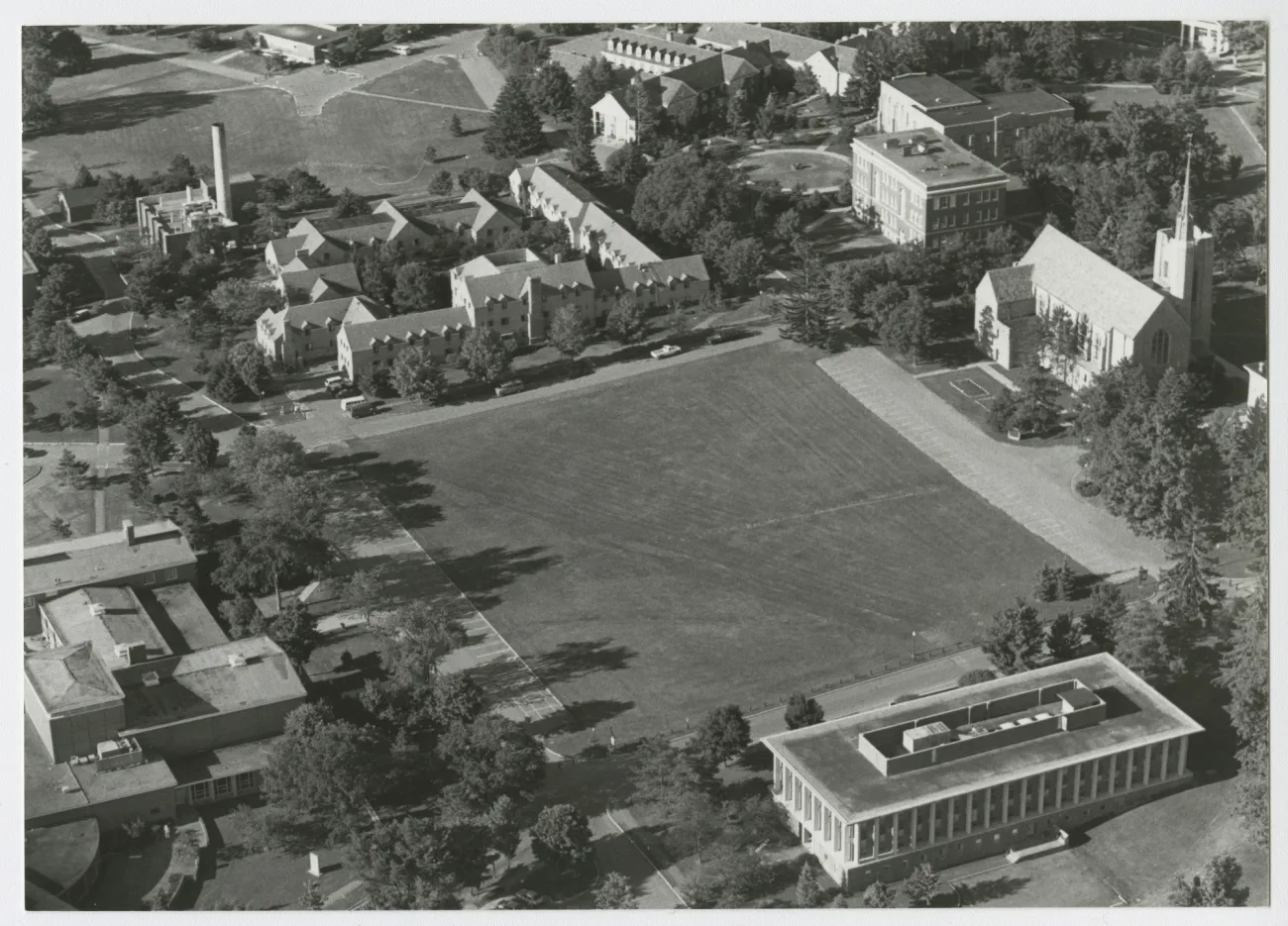 Explore this collection building Overview Creator: unknown Subject: St. Lawrence University -- HistorySt. Lawrence University -- BuildingsSt. Lawrence University -- PhotographsSt. Lawrence University -- Aerial Photographs Description:Buildings surrounding the quad in the 1980s looking south. From lower left, Griffiths Arts Center, E. J. Noble Center, Heating Plant, Bookstore, Dean Eaton, Sykes, Hepburn, Carnegie, Gunnison Chapel, Vilas. Coverage:Canton, NY Source:Photograph, b & w, 5"h x 7" w Date Original:[198?] Decade:Mon, 12/31/1979 - 20:00 Rights Rights Management:Original materials may be protected by the Copyright Law of the United States (more information). Resource Identifier:ODY Special Collections, Archives, RG2, Series 3.2 B&G Campus Box 9 Publisher:St. Lawrence University Contributor:St. Lawrence University Technical Digitization Specifications:Scanned at 600ppi on Epson 1000XL scanner as 48-bit RGB uncompressed TIFF images. Images resized to 2000 pixels wide, 150 dpi, and saved as JPEG (level 10) in Photoshop CS5 with Unsharp Mask of 60:1. Date Digital:Sun, 01/15/2012 - 20:00 Format:image/jpeg Type:Still Image Contributing Institution:St. Lawrence University Location Series:3 Box:9 Folder:1980s