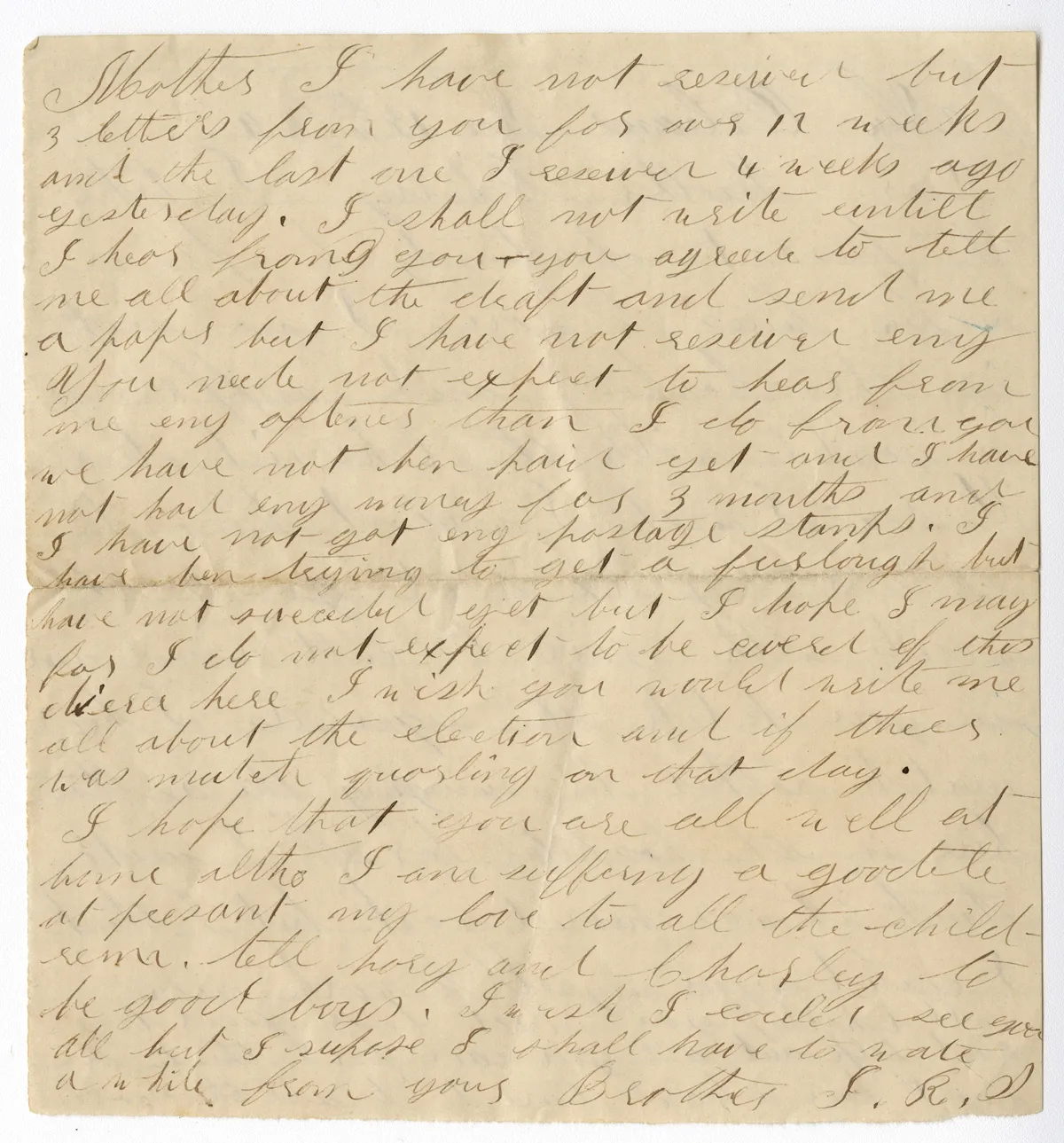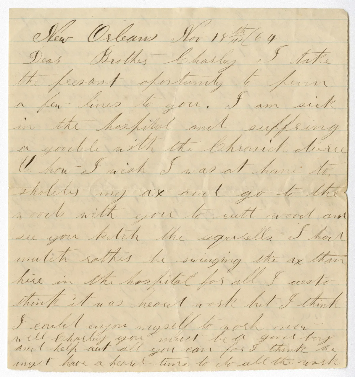 I take the presant opportunity to pen a few lines to you. I am sick in the hospital and suffring a goodele with the Chronick dieree [diarrhea][.]