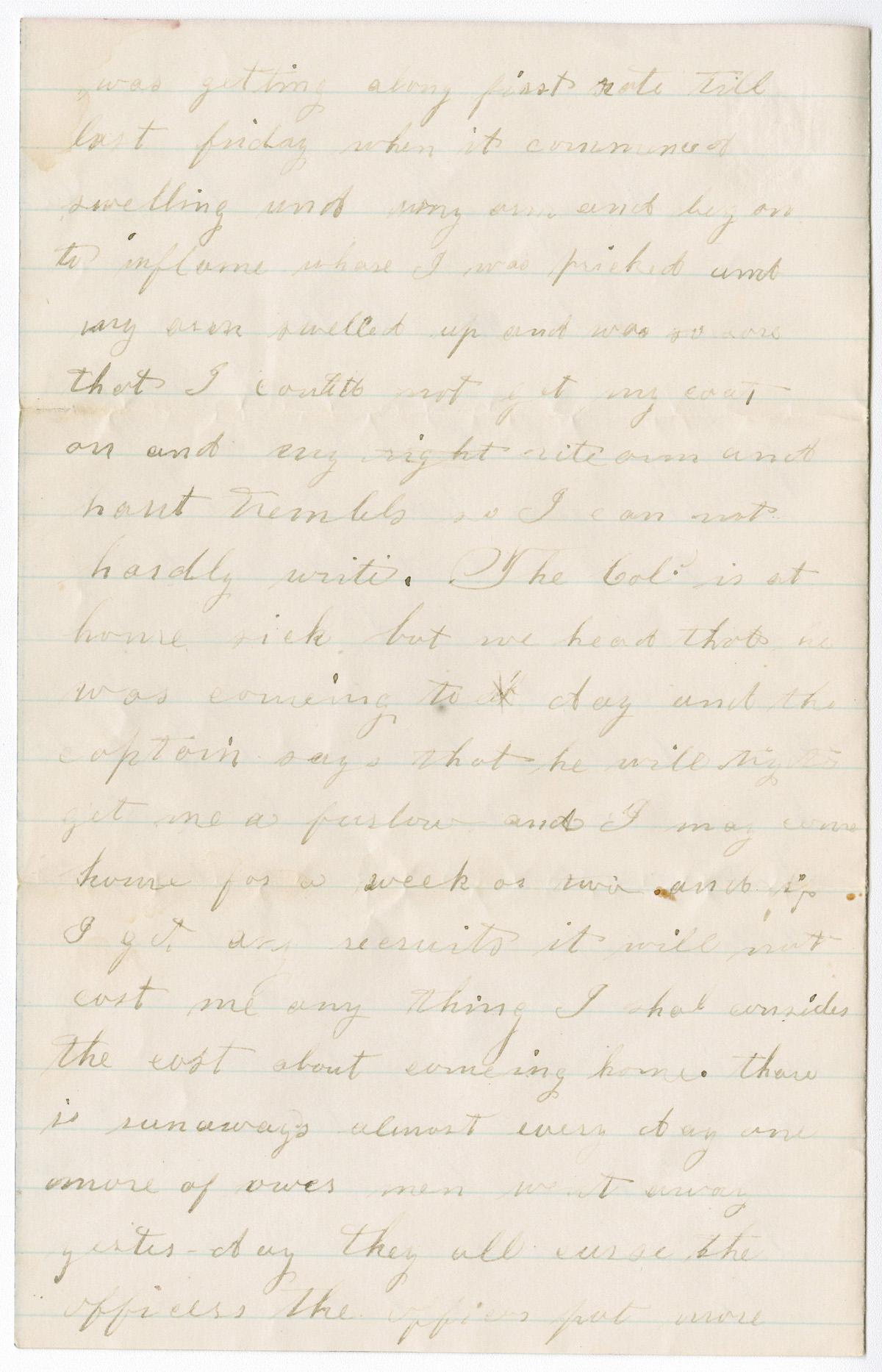 I received yours of the 5 and was glad to hear from home. I sent a letter by Howard Cast Saturday to the post to be left at _________. He said he should get there at night.