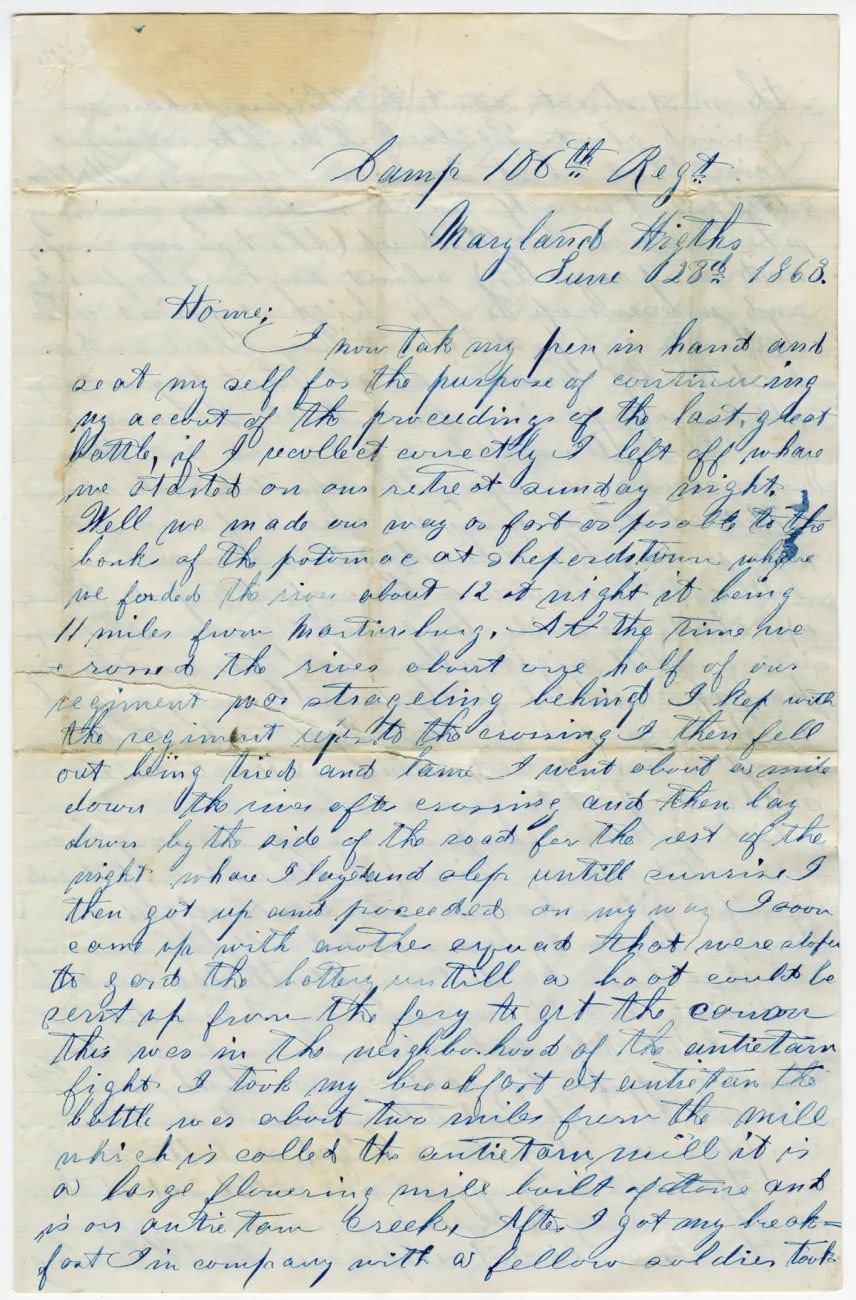 I now tak[e] my pen in hand and seat myself for the purpose of continuing my account of the proceeding of the last great battle.